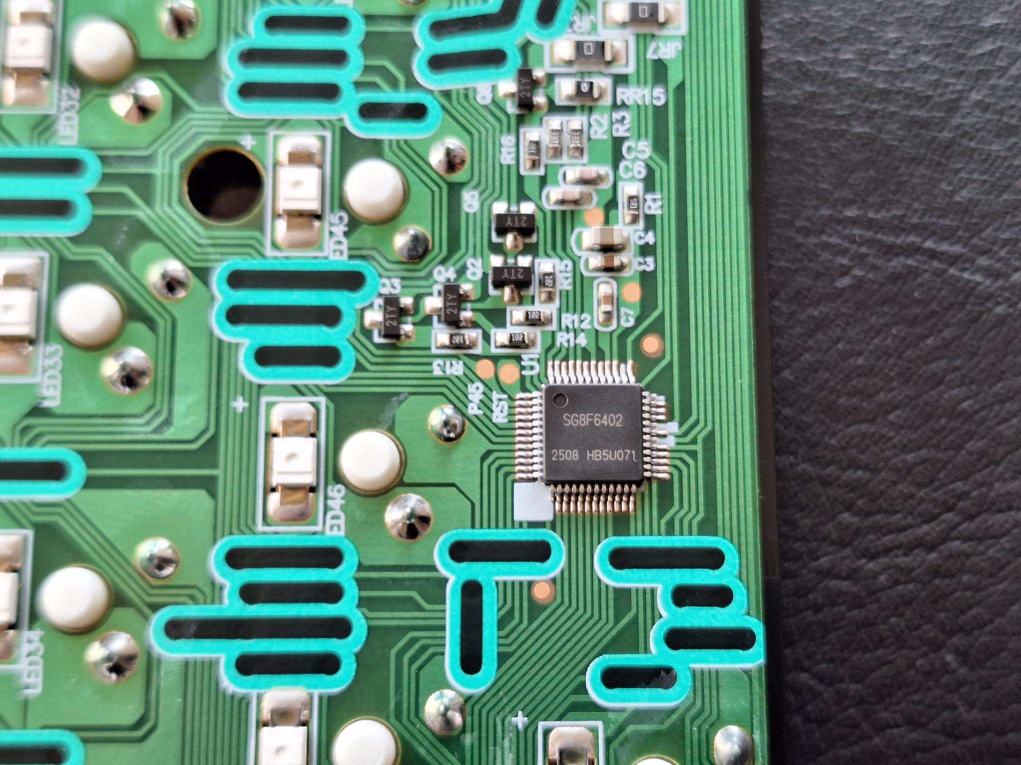 On the first photo above you can see the SG8F6402 MCU that is running the keyboard.