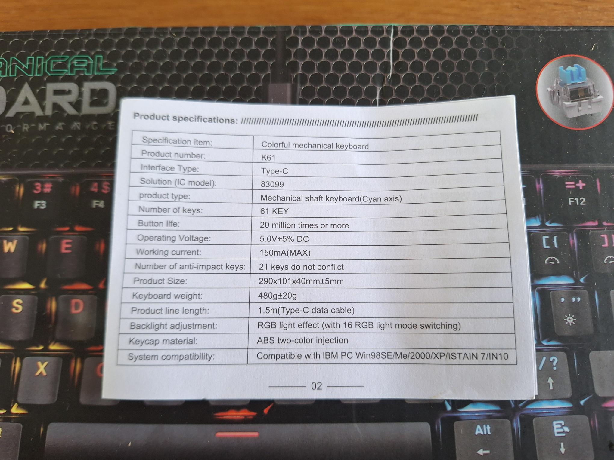 2 weeks ago I needed some distraction and after reading in this topic again, I did set myself the challenge to buy the cheapest possible (true) mechanical keyboard on Aliexpress I could find, regardless of size/type or brand.