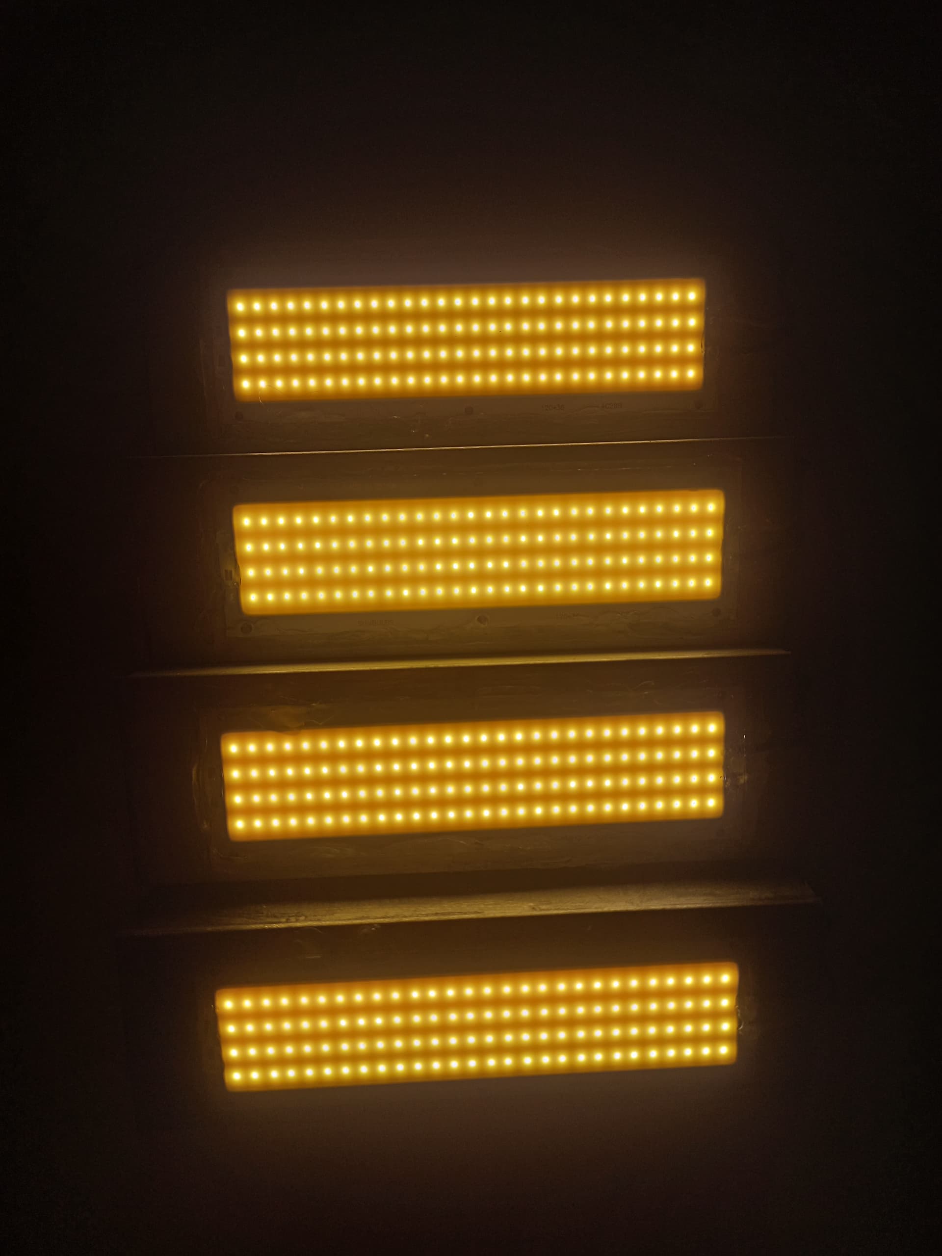 Sumbulbs 120x36 12V 12W 3000K R80 LEDs underdriven to 3W(~300 lm) in order to not overheat