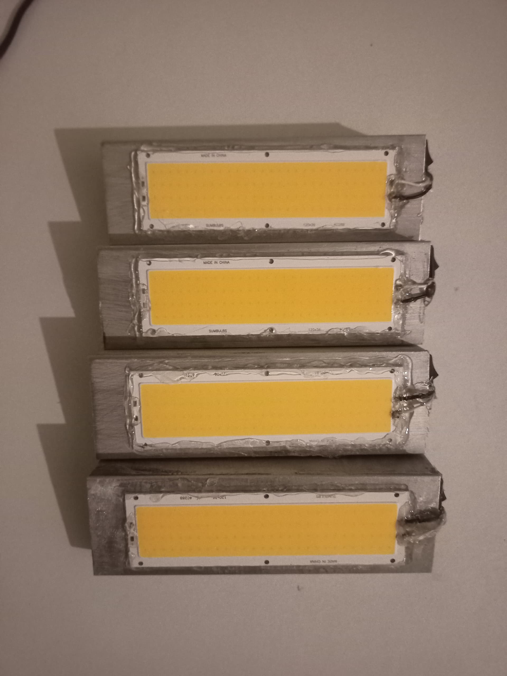 Some time ago I made these simple COB flashlights on 15cm pieces of aluminum cornice as a radiator