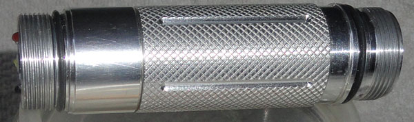 The LED wires are just visible on the left end (the head). On the other end (the tail) the distance from the o-ring to the end of the tube is visibly longer than the similar distance on the head end.