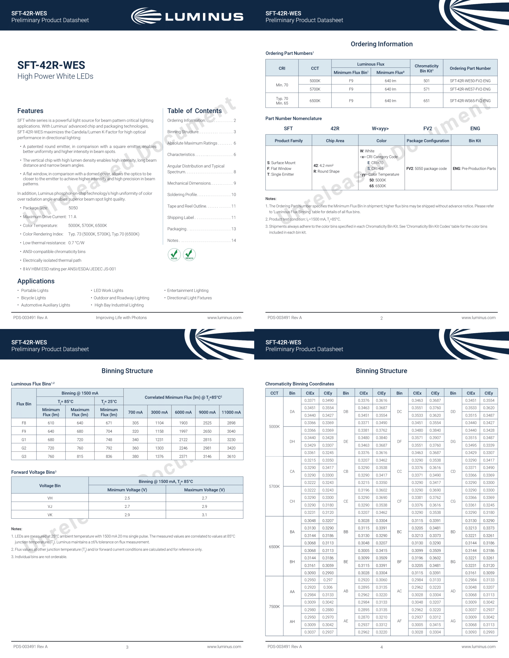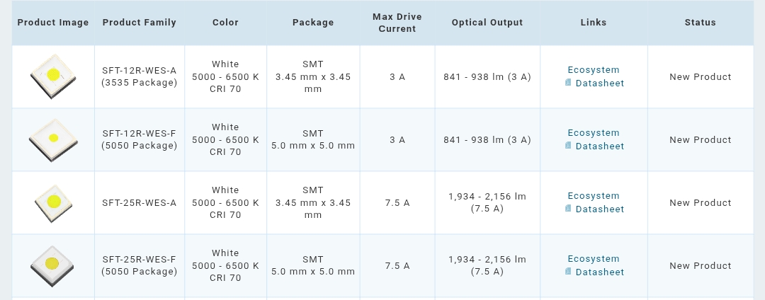 The nomenclature and binning is consistent with that of Luminus. Perhaps it will appear on the Luminus site in a few weeks, like the 5050 SFT25R.