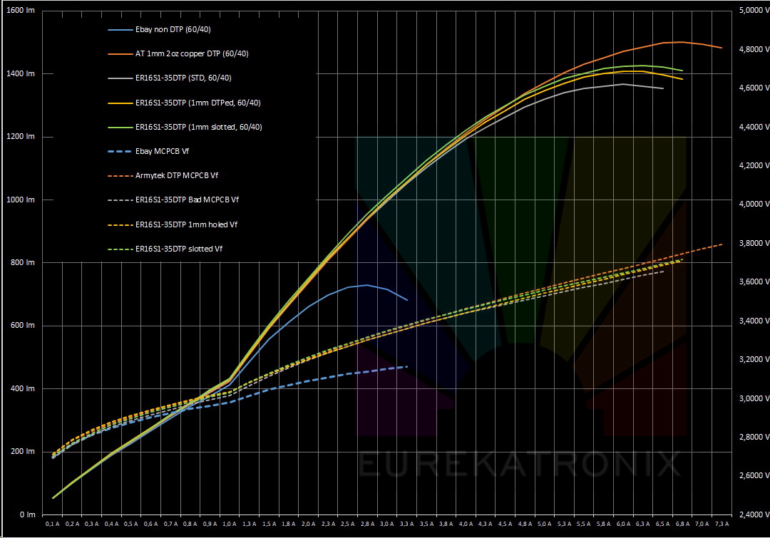 We don’t have a direct comparison between Convoy boards and Eurekatronix boards but take a look at this comparison between DTP (orange), unknown non DTP (blue) and non DTP Eurekatronix (grey) with 3535 leds.