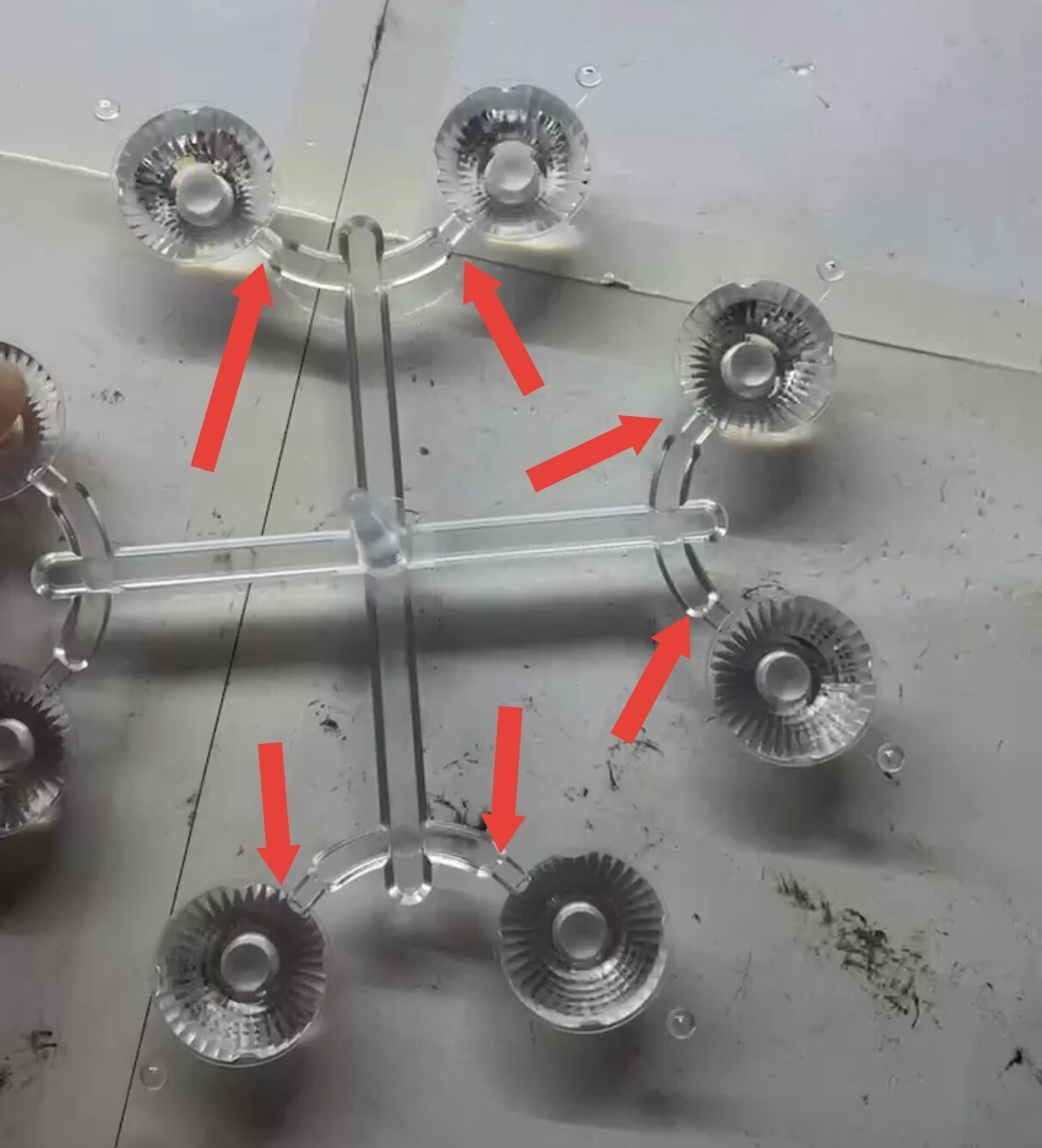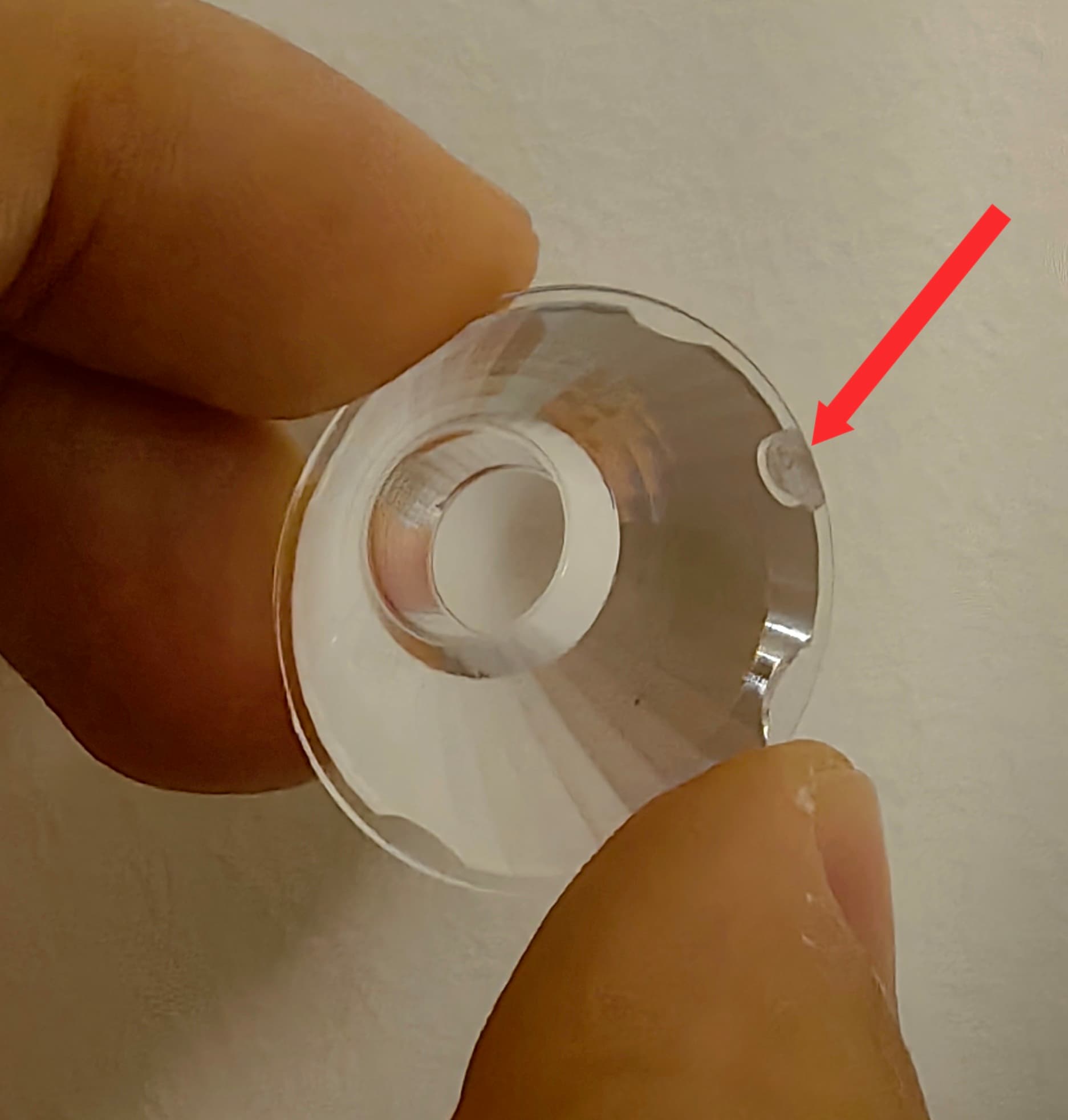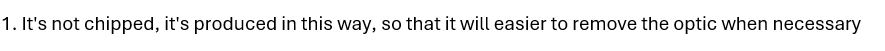 This is FAQ almost every week, “Hank, my optic is chipped?”, the optic is not chipped, it’s designed/produced in this way, which is called Injection molding gate.