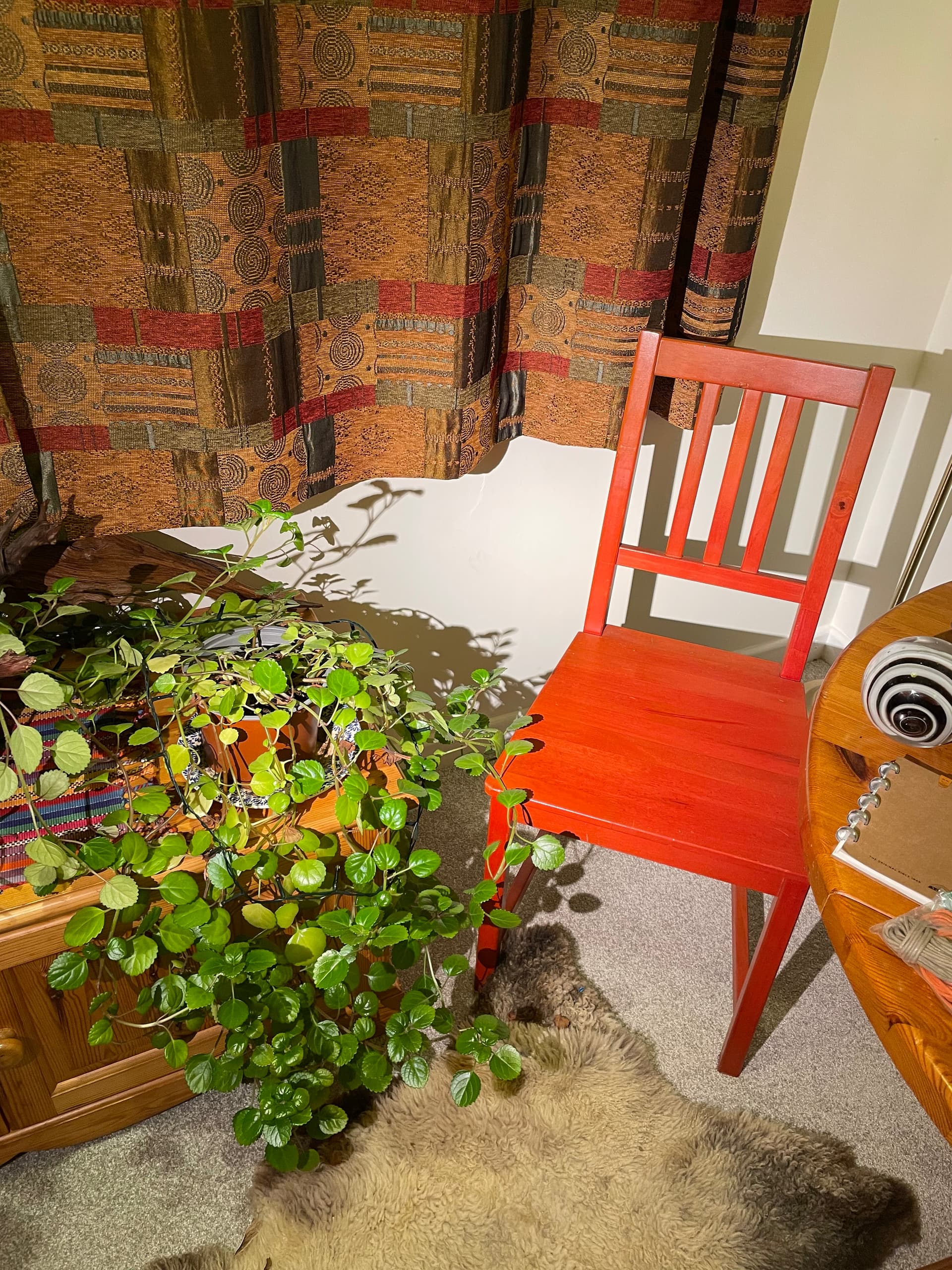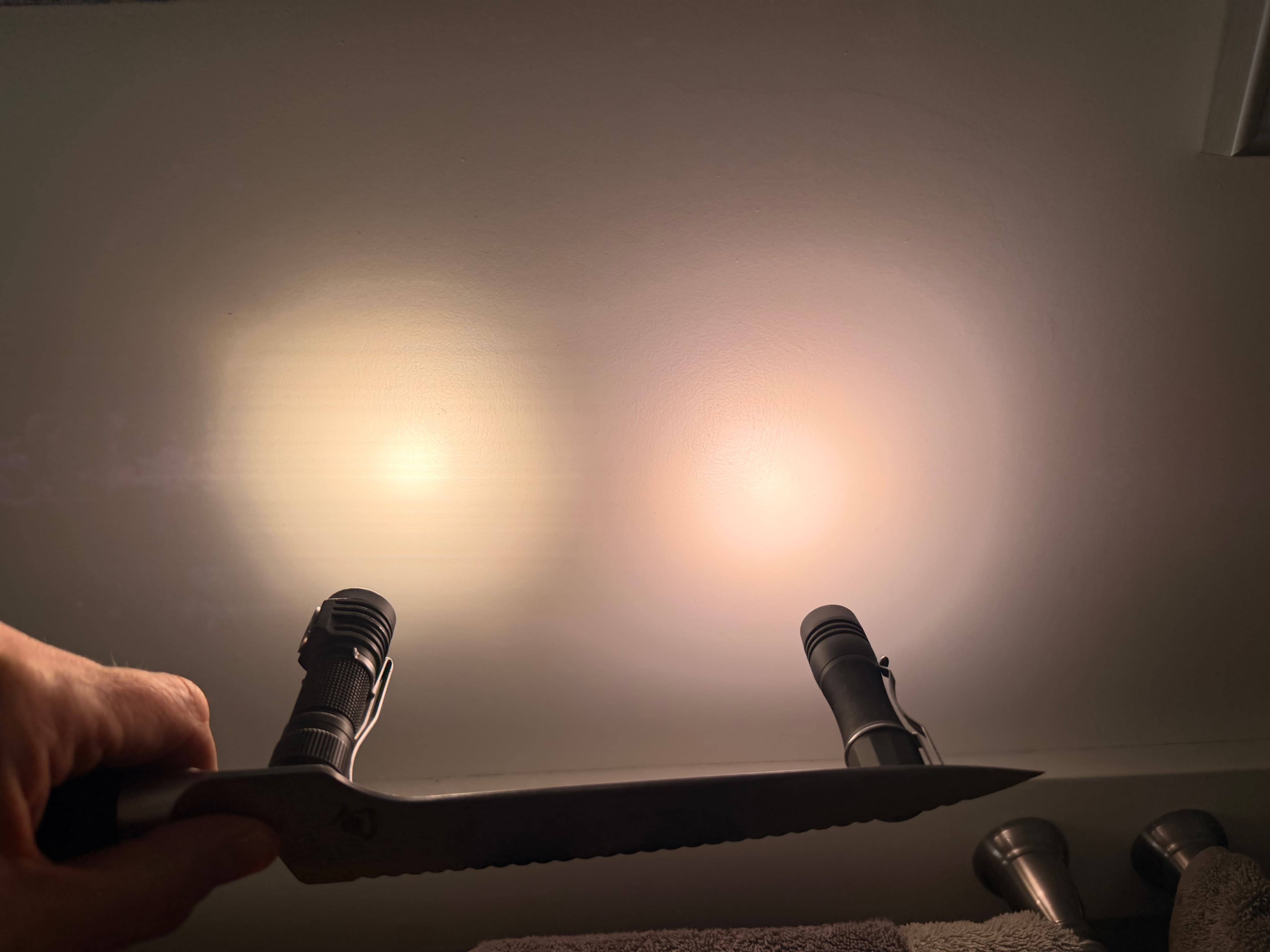 It was truly bad luck the tiny chip of plastic managed to find its way onto the emitter and screw the beam. It’s a lovely tint for indoors, and probably a nice outdoor short walk light. Look what it does to the earthy colours. ![]()