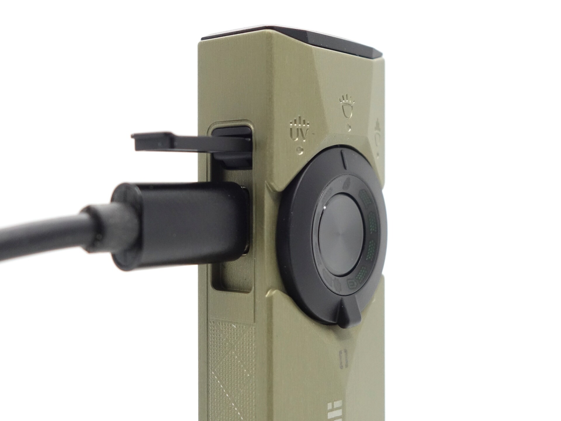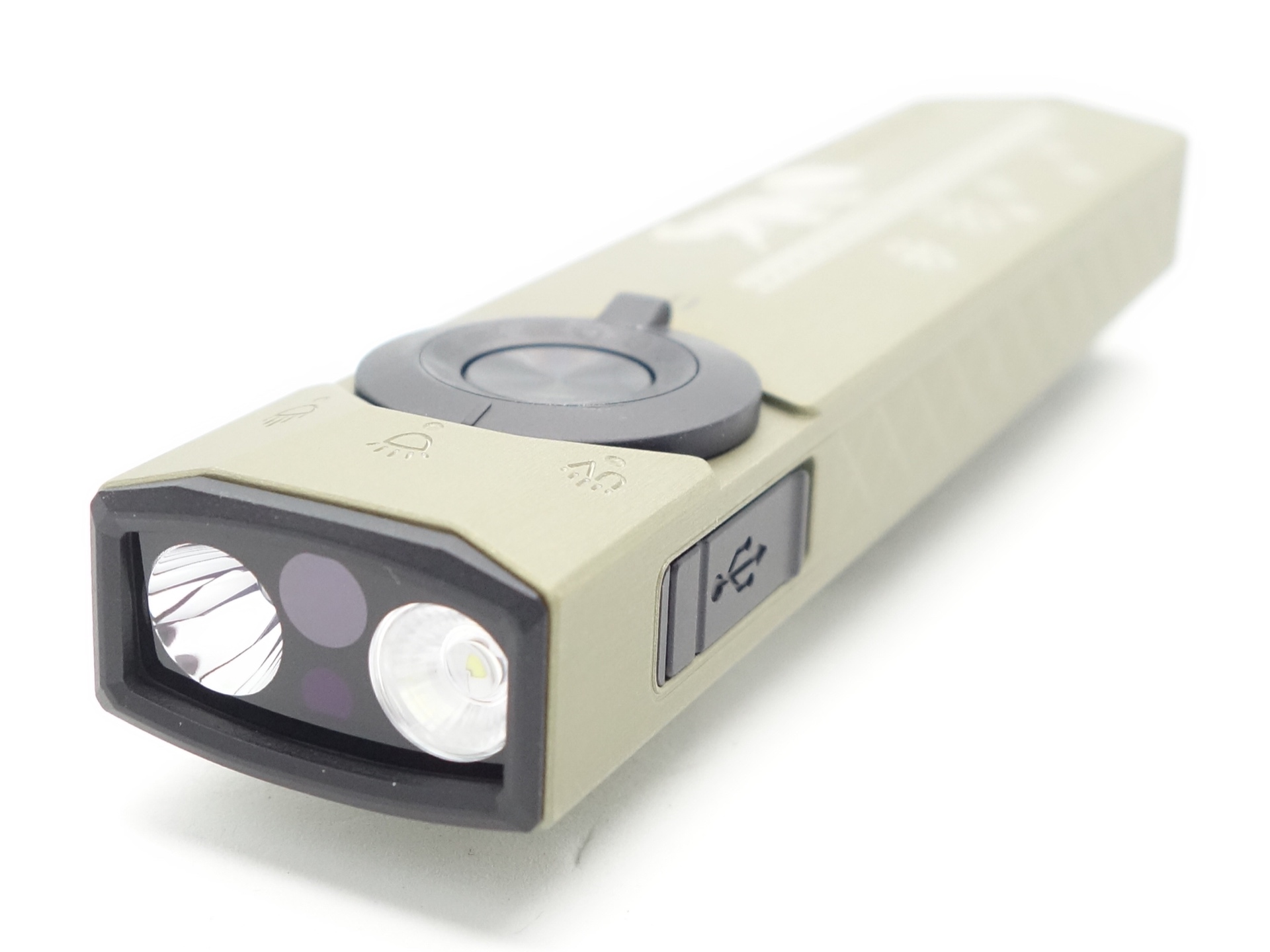 The Olight ArkPro Ultra is a flat-style EDC torch with a spotlight, a floodlight, a green laser pointer, a 365nm UV light and it has both magnetic charging and USB-C charging.