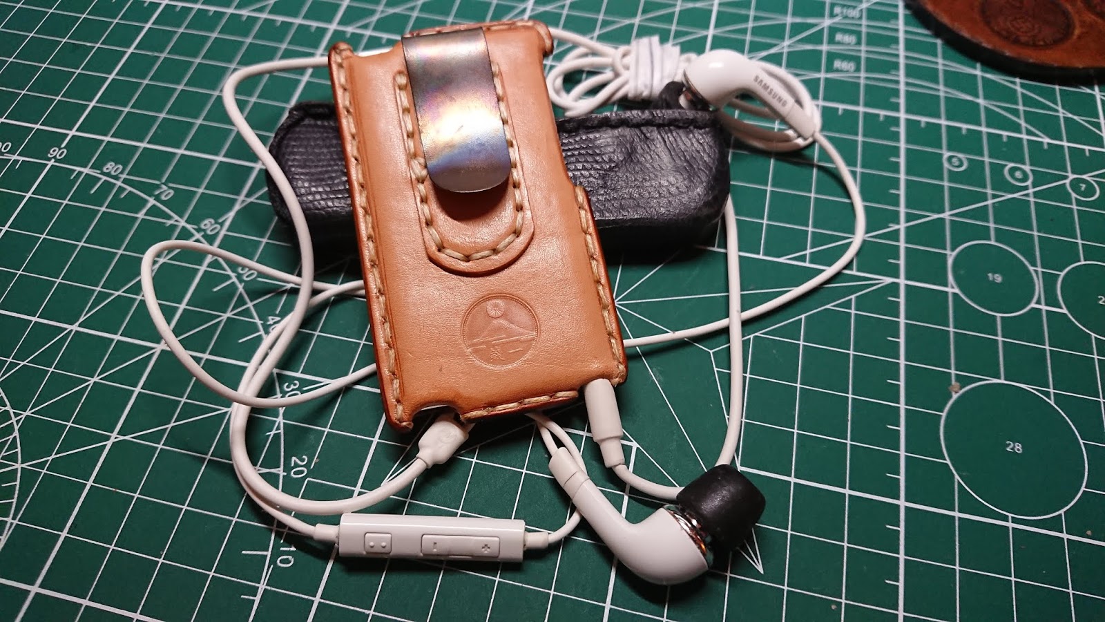 Wet formed leather, Titanium clip. Working well so far but of course it’s a prototype so I’d make things differently now.