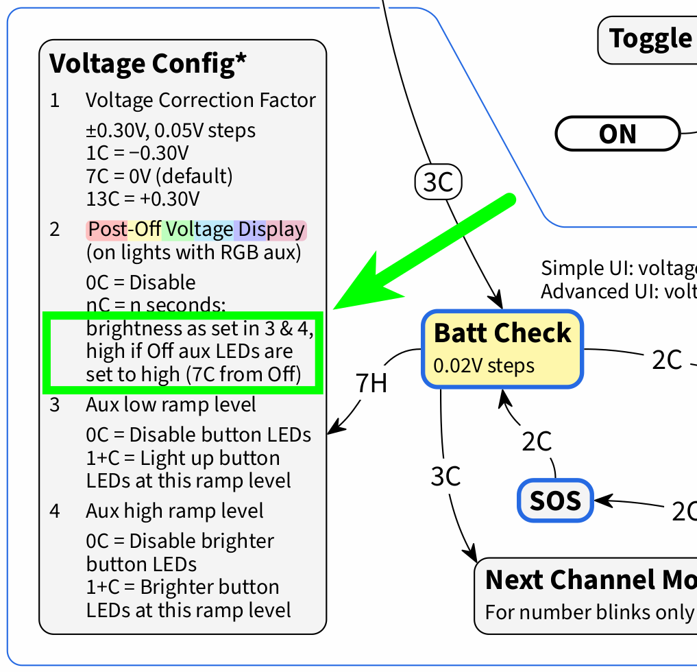 IMO very simple indication with available colors only (red, green, blue) would make the most sense. Perhaps simply green-blinking green-red-blinking red with 25% per step.