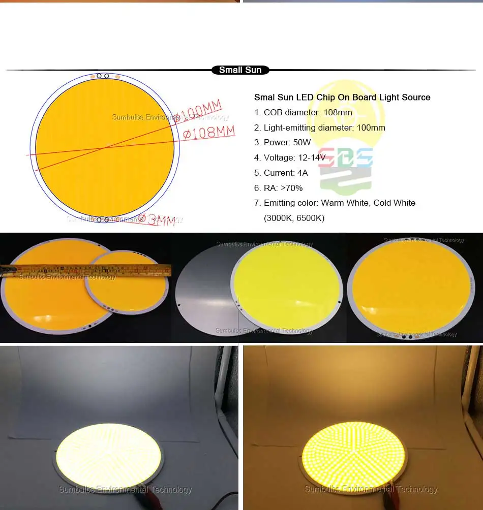 These are less than $10 each, the ratings say 12V 4A (48W) and >100lm/W, so that would be a claimed ~5000lumens each. I have some of the smaller COBs from this store that I bought for a different project and they were fairly accurate with their lumen claims.