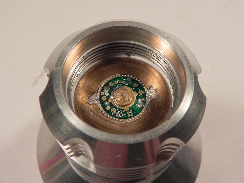 I don’t know what took me so long to finally use the LD-2 driver, but here I used one of the 3 I got. This sinner titanium host has been through at least 5 different driver/LED configuration. The pill has been reflowed with a copper mcpcb on top numerous times but now it finally got a definitive combo to live with.