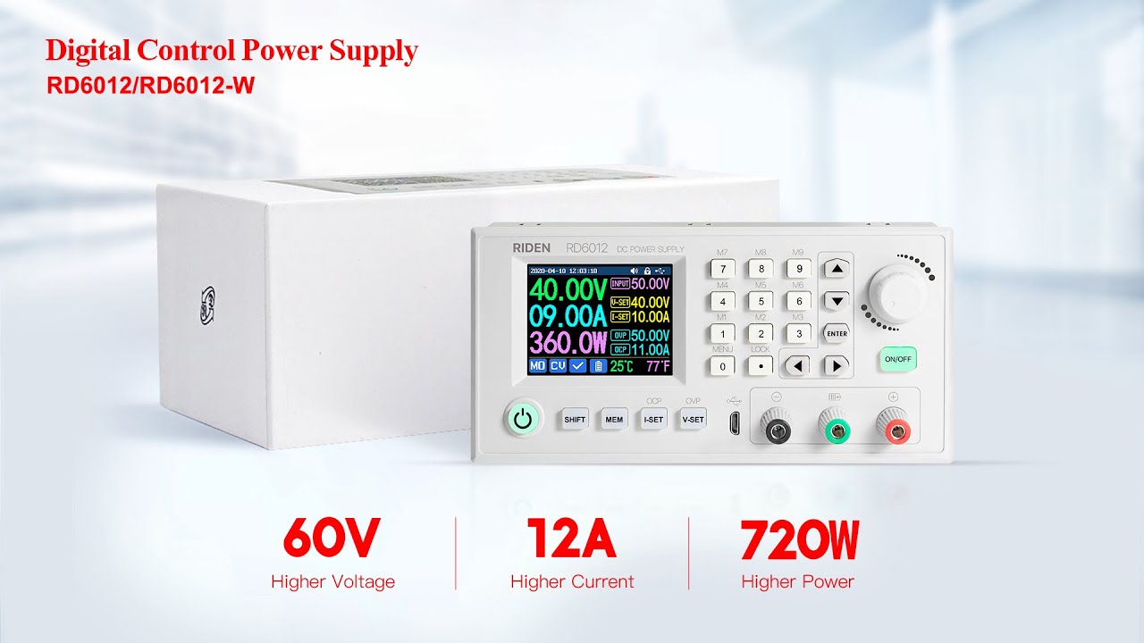 we release the second power supply of RD series, it is RD6012, 60V, 12A, 720W power supply, we redesign the circuit, compared with RD6006(60V,6A,360W), it has higher current output.