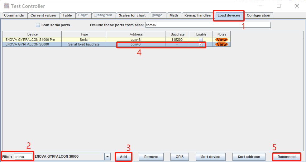 If you have successfully installed Java and have downloaded and opened TC (TestController), please follow the steps shown in the image below to select the correct port. This will establish the connection between TC and your device.