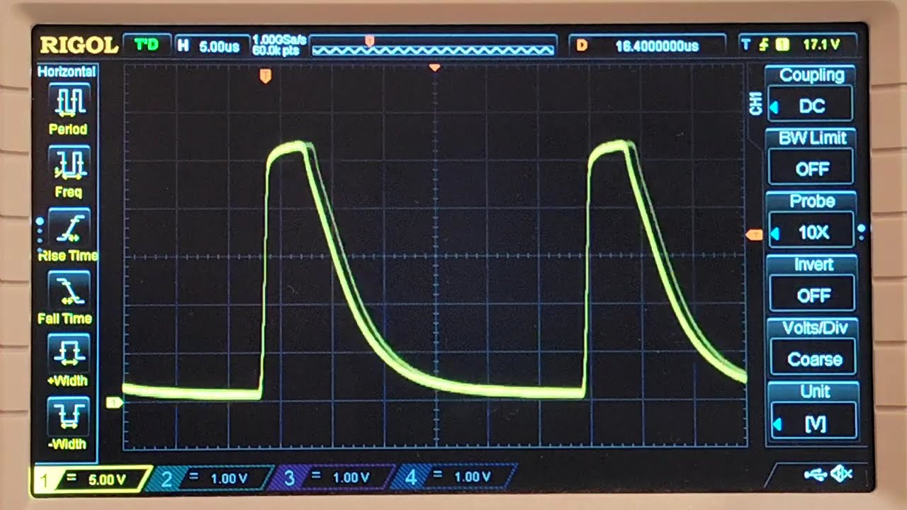 There is a reproducible flickering in the ramping, especially at low brightness. As only the duty cycle is changed, I can only explain this by a bug in the firmware.