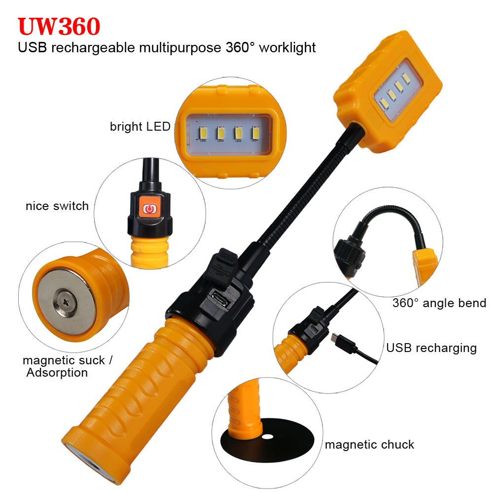 This is a nice little worklight, and quite handy. Except for the flexible neck, construction is all plastic, making it rather lightweight. Especially in the head, reaching out far from the base, you don’t want a heavy head to tip over the light, or if using the magnetic suck base