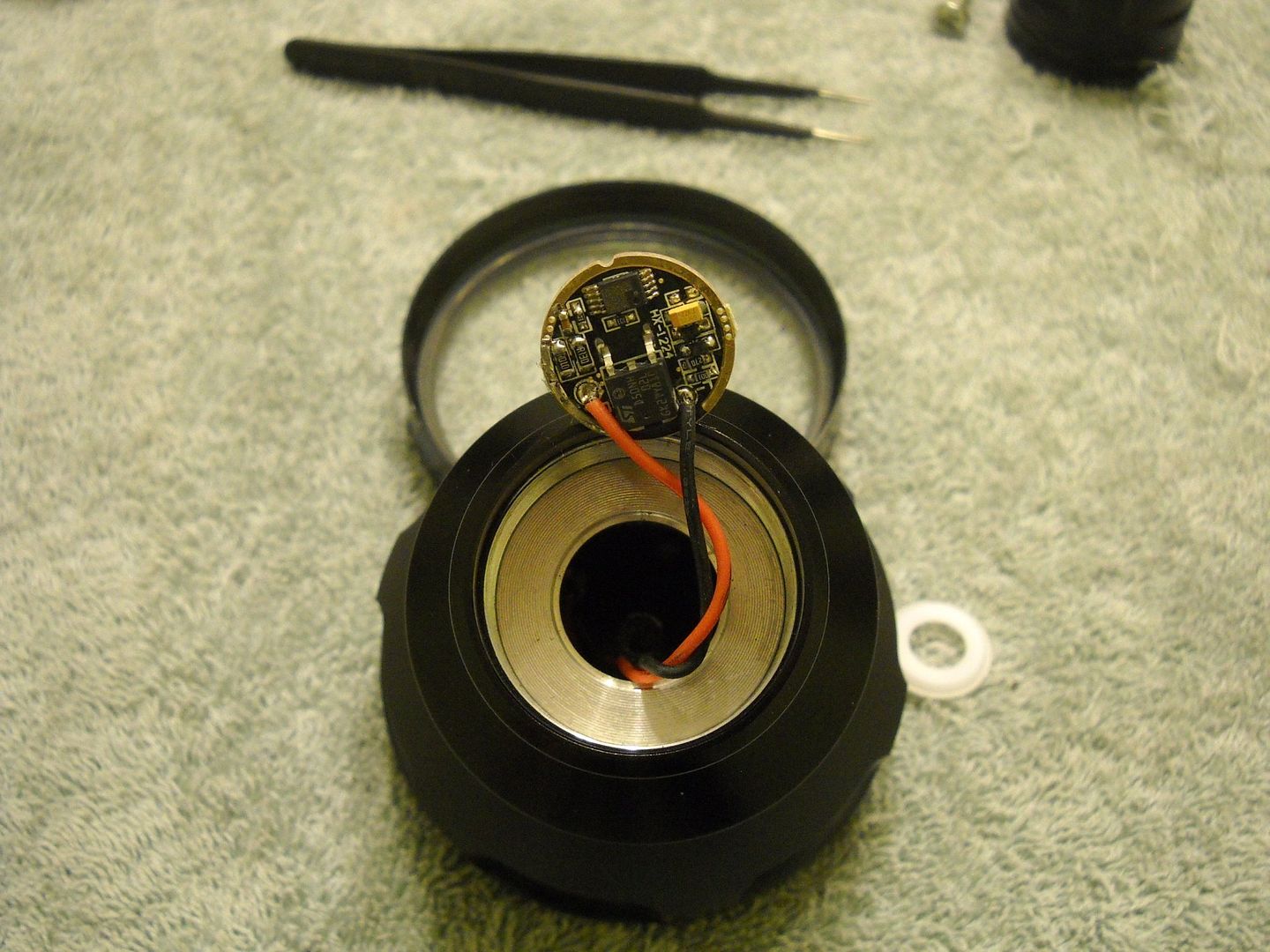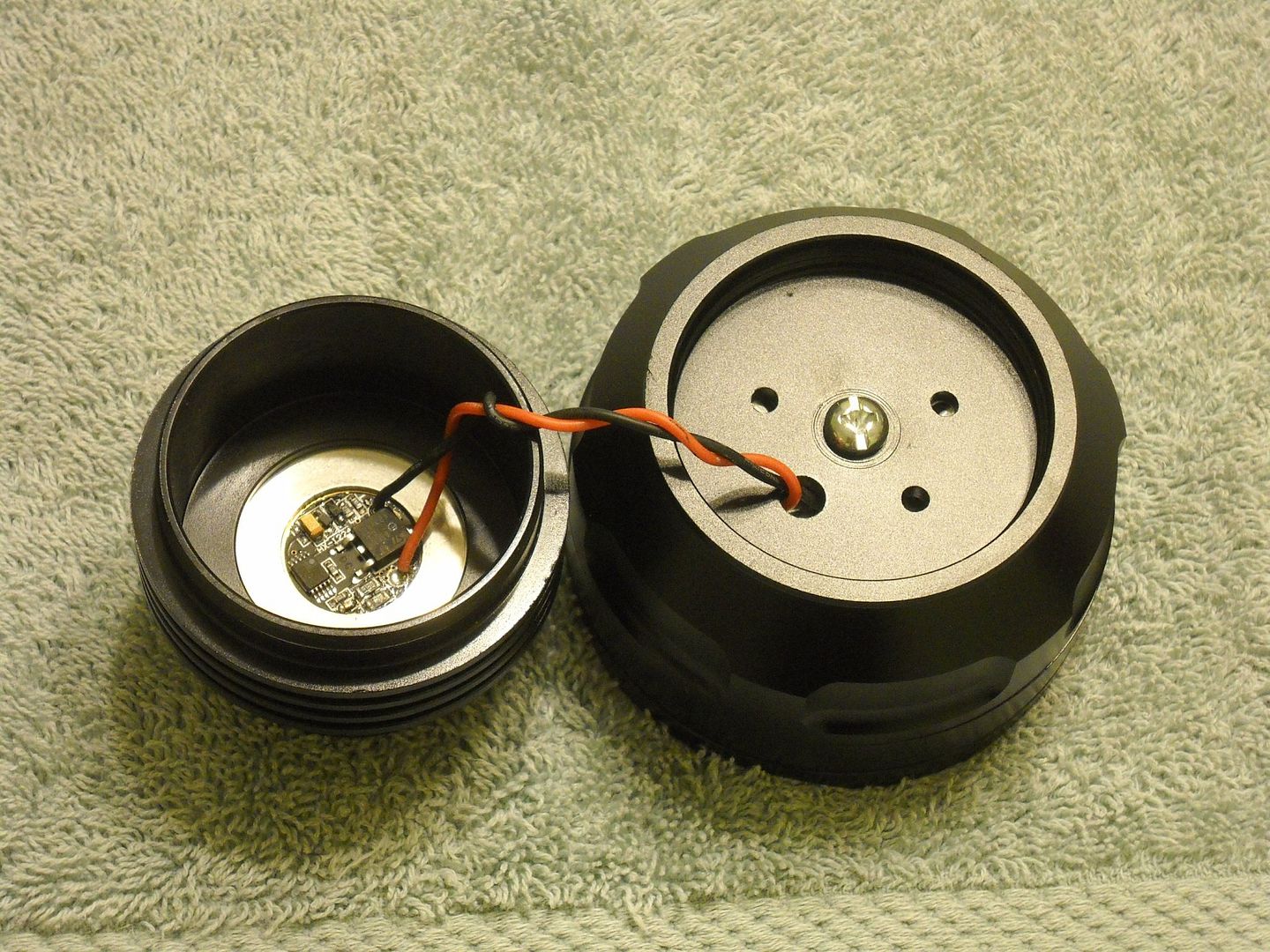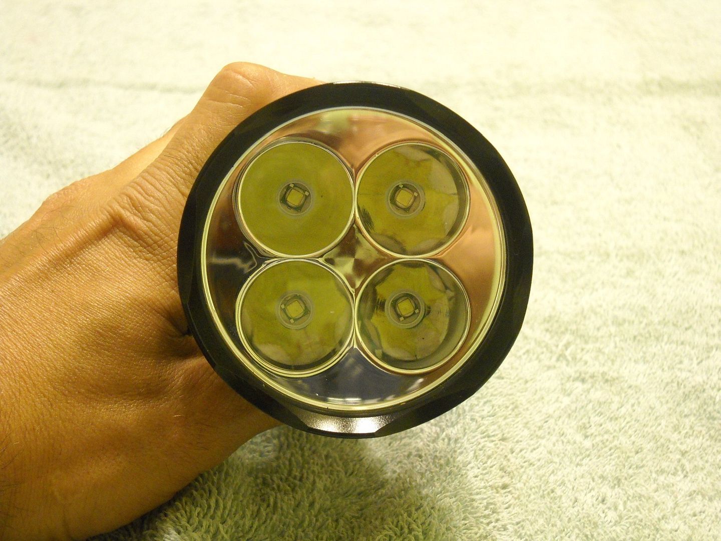 Upon disassembly you see that the “heatsinking fins” are really just for looks as the area where the LED’s are mounted in the head do not make direct contact to them. Heat must be transferred from the head through threads to get to these fins. After leaving the light on for about 5 minutes I noticed a lot of heat at the glass lens and the bezel, but almost none at the heatsink fins.