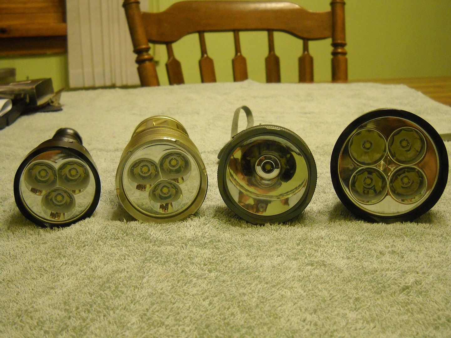 Size Comparison against other known lights (left to right:Trustfire TR-3T6, SkyRay King, HD2010, Rustu RX-40)