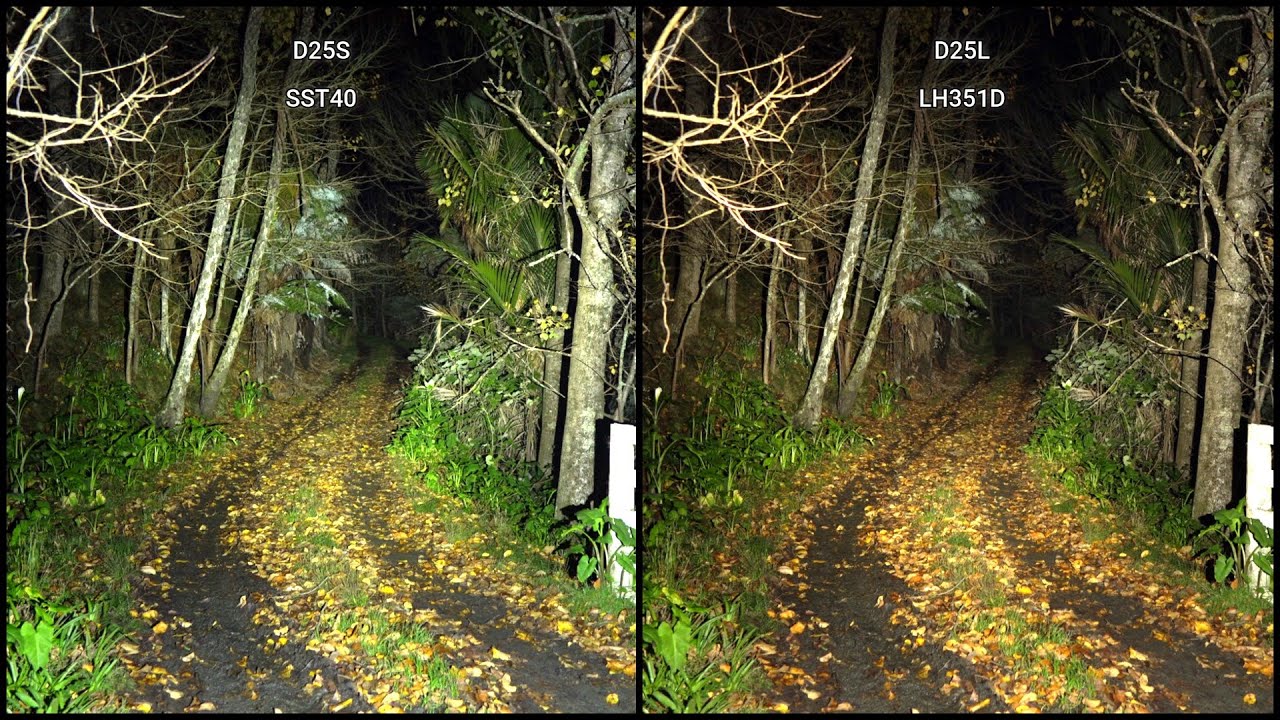 And yeah, kinda meshes with my experience, that the SST40s give a brighter somewhat throwier beam, better for longer-range snooping (eg, outdoors, on a trail, etc.), and the 351s give a better-color somewhat floodier beam, better for intermediate range snooping (eg, in a room, attic, garage, backyard, etc.).