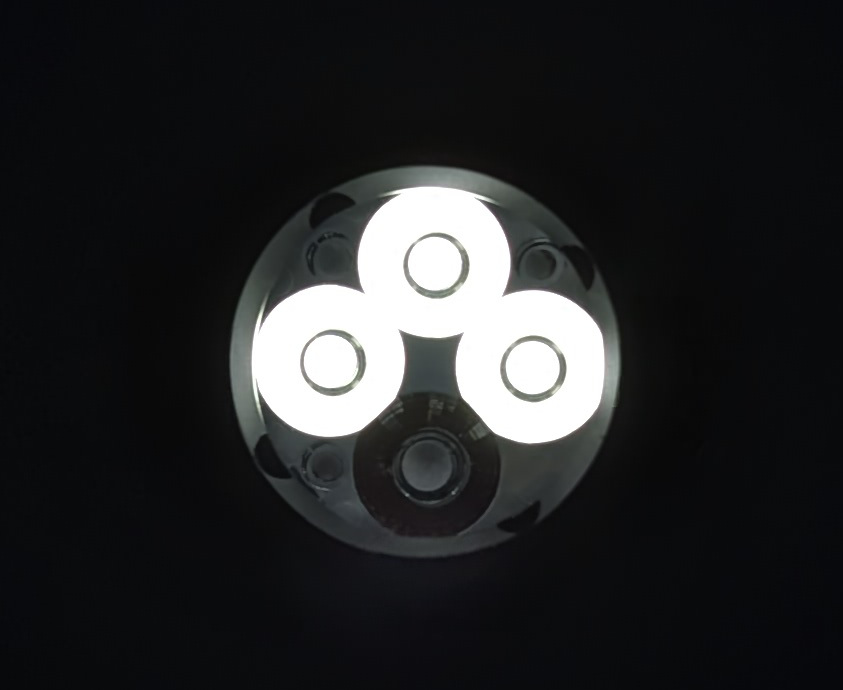 There are 4 LEDs hidden under a TIR, 3 white TN3535 and for red a SST20R.