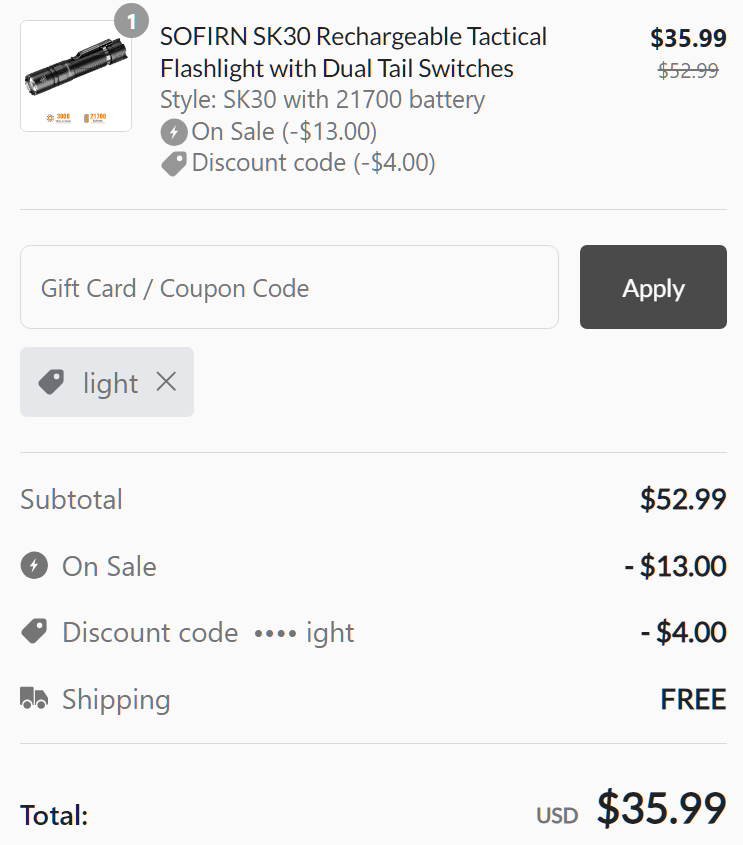 Price context: SK30 is currently on sale for $35.99 on Sofirn site with coupon (with 21700 battery, holster and free shipping).