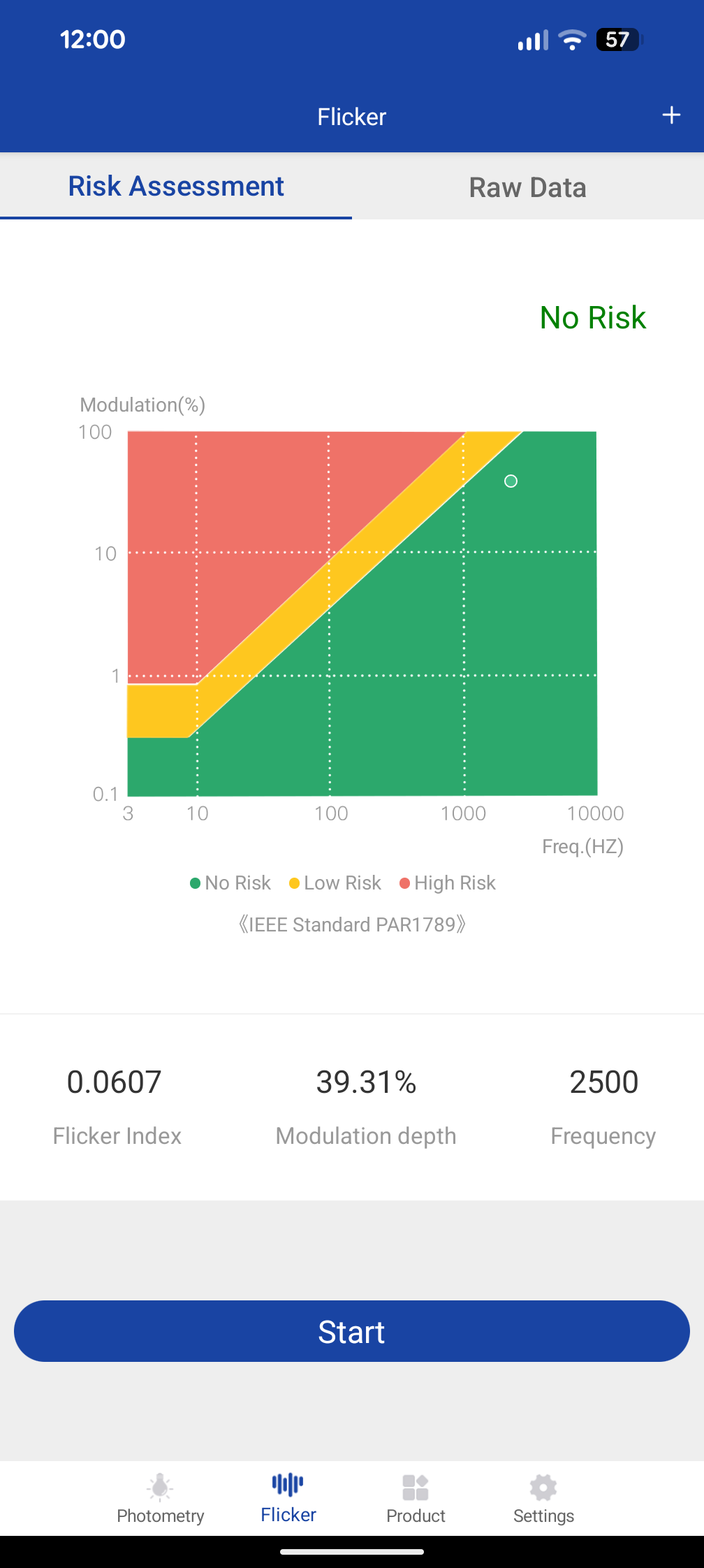 Flicker Index shows no Risk on all Modes, although close to the yellow area on LM III.
