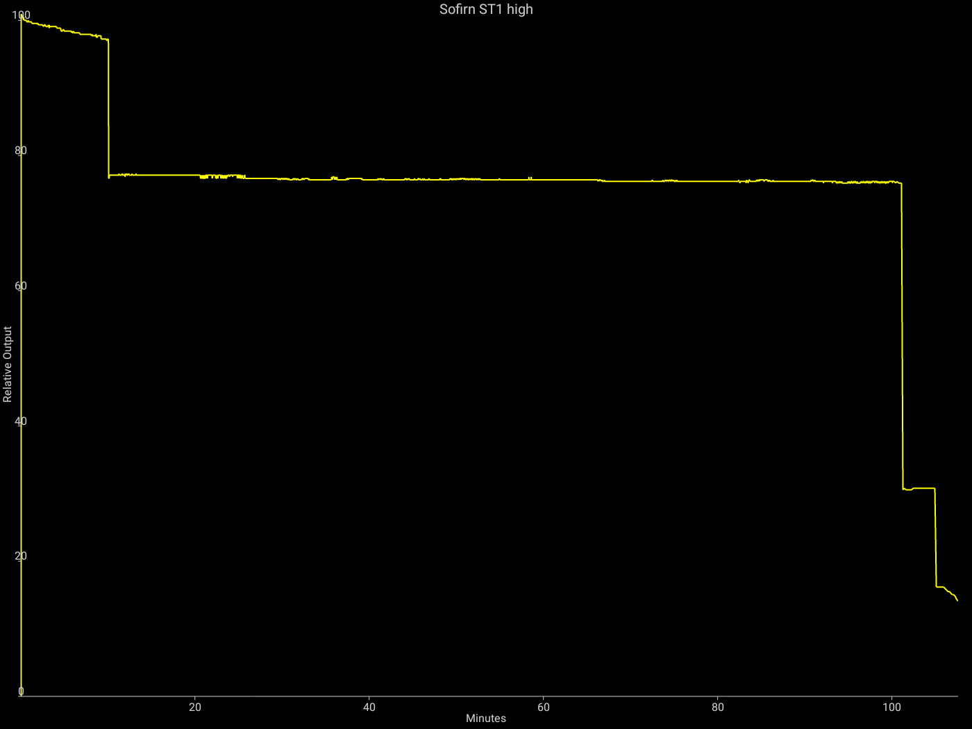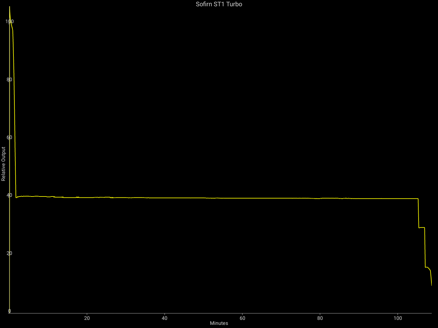 Sofirn claims 2+100minutes for the highest mode, my sample exceeds that slightly.