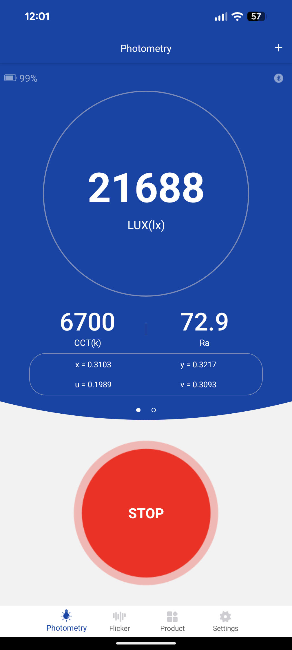 CCT ranges from ~6100k on low to ~6700k on Turbo. It’s a bit hard to measure as the side LEDs are warmer than the main LED.