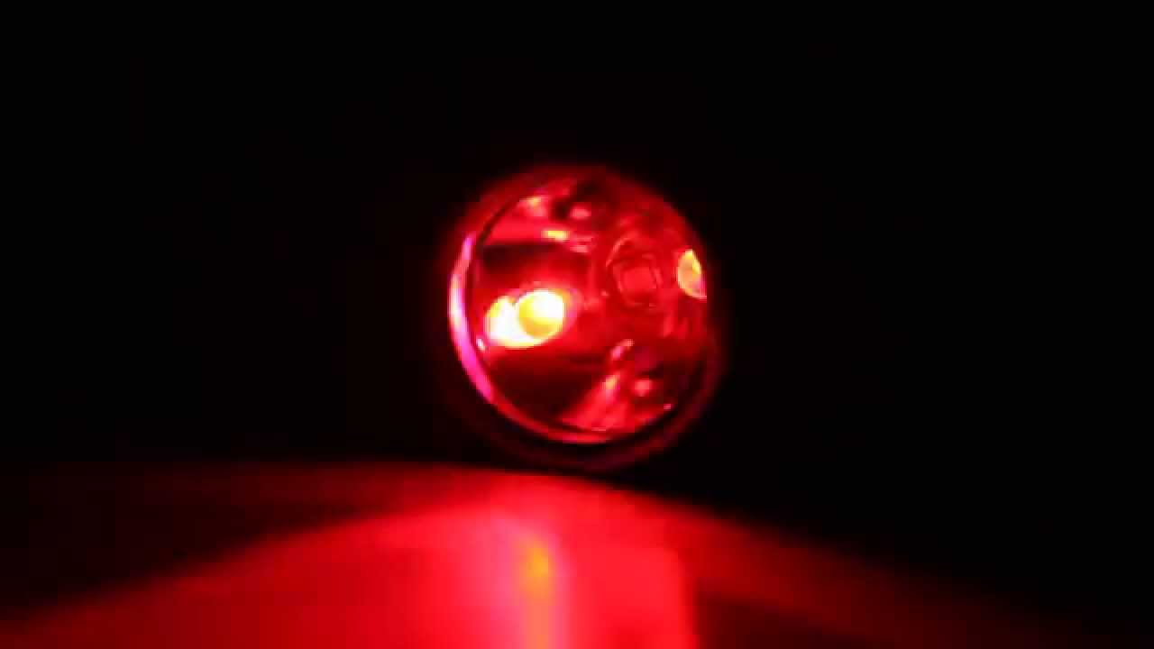 The colored light beam of the two 5mm LEDs shows the usual concentration of typical aberrations of such LEDs. Also the Red color is markedly weaker and fainter than the blue.