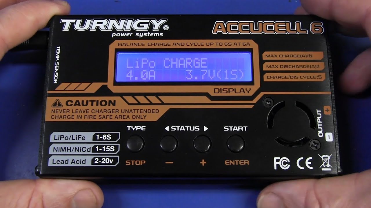Turnigy Accucell 6 Hobby Charger Reviewer's Overall Rating: ★★★★★ [image] Summary: Battery types: Just about anything Power: 12V DC in Price Paid: $32.98 shipped plus $7.79 From: Hobby King Date Ordered: 24 Mar 2011 Pros: Charges/Discharges just about anything Alarm when finished Bright display Configurable Optional temperature probe Safety cutoffs for temperature, time elapsed, and total charge Data logging possible with connector (see Post 77) Cons: Complicated No b…