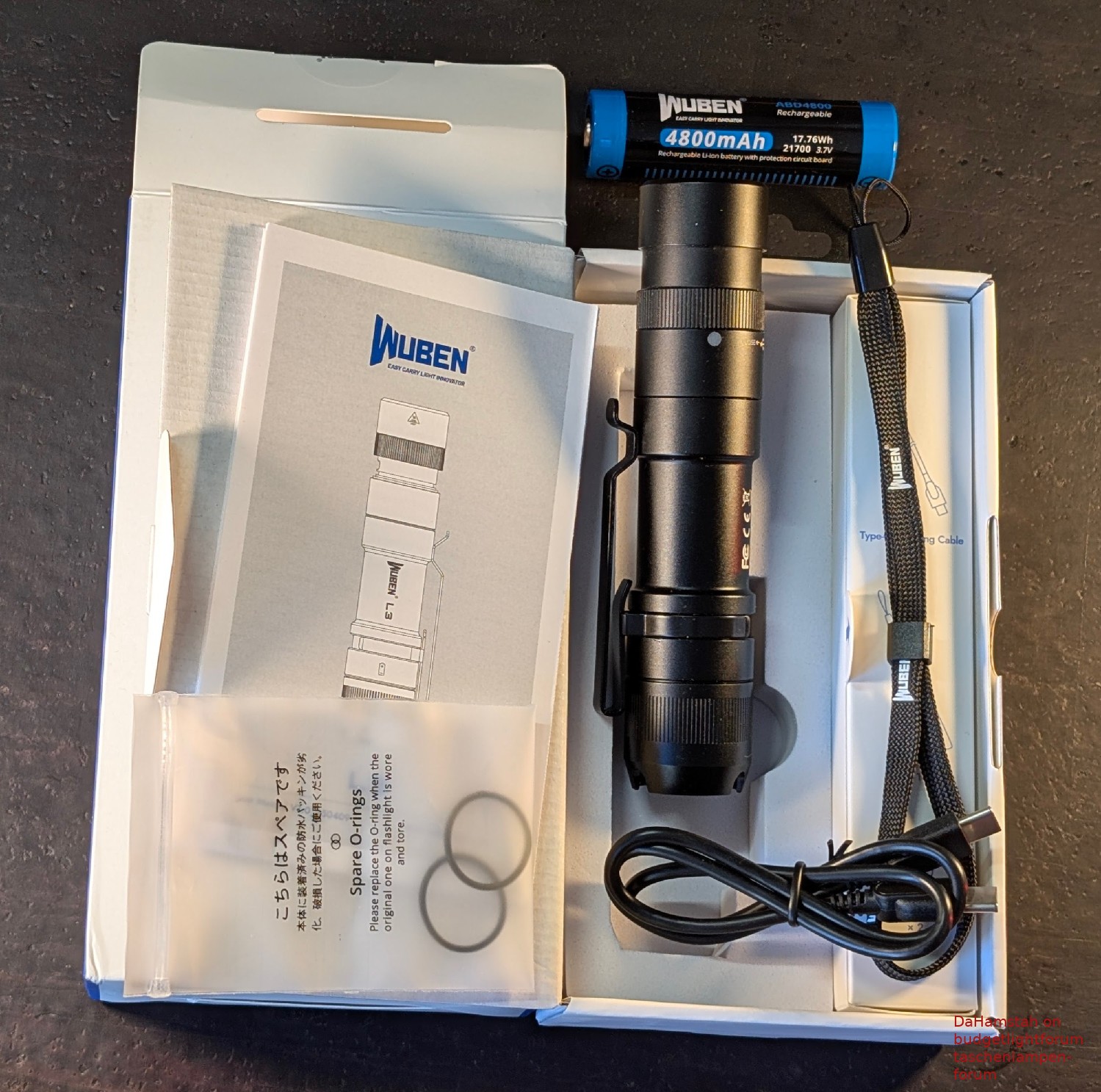 It’s a classic sleeved box, not the flip style the X4 comes with, but still makes a very nice fist impression.. Included is a multilingual manual, a USB-C cable and a lanyard. The battery was already in the light, protected with an insulation sheet.