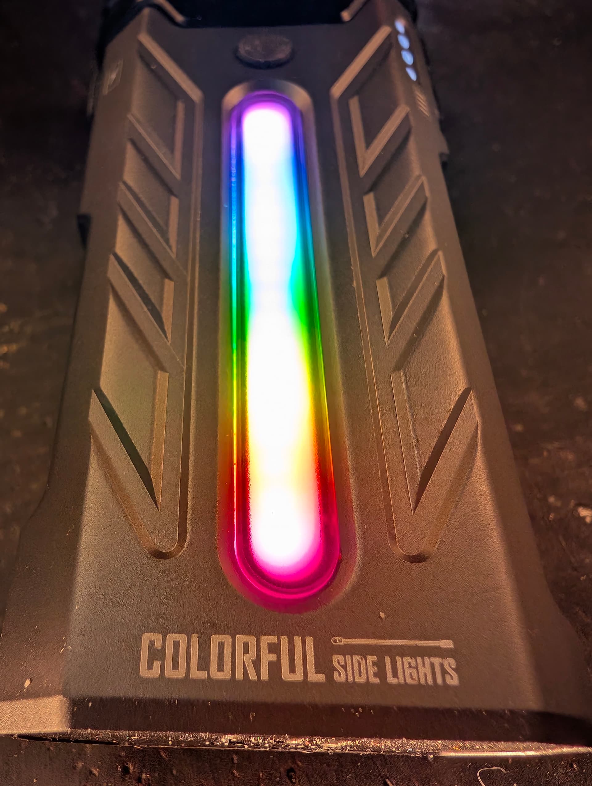 The colors of the sidelight are cool and easily selectable, white is a RGB mix, so don’t even think about tint and CRI - its terrible. It is somewhat white, but it’s not a strength of the light.