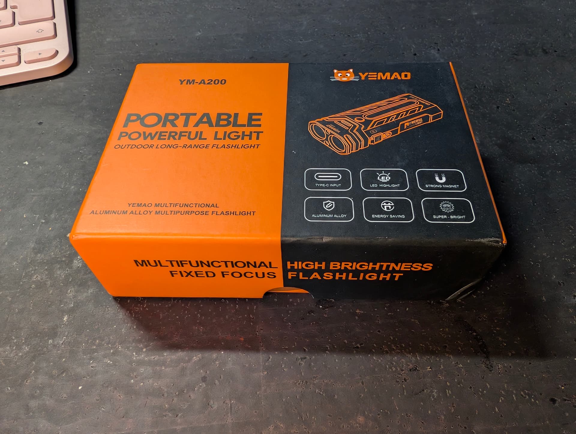 The light comes in a compact black/orange box with some basic information on it. The foam in it looks cheap, but protects the light surprisingly good. Also included is a USB-A-C-cable and a multilingual manual.