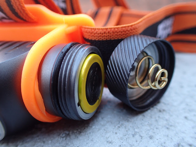 This light probably isn't designed to be used without the headband, which will be the main way to keep it where you want it. The straps come assembled, which is welcome after struggling with the options from Armytek and Skilhunt. The elastic webbing used feels a bit less premium than some others, but it is comfortable and stays in place. The holder for the light is made of an awesome orange silicone. It's a bit stiff to adjust the angle of the lamp, but it's easily doable with one hand.