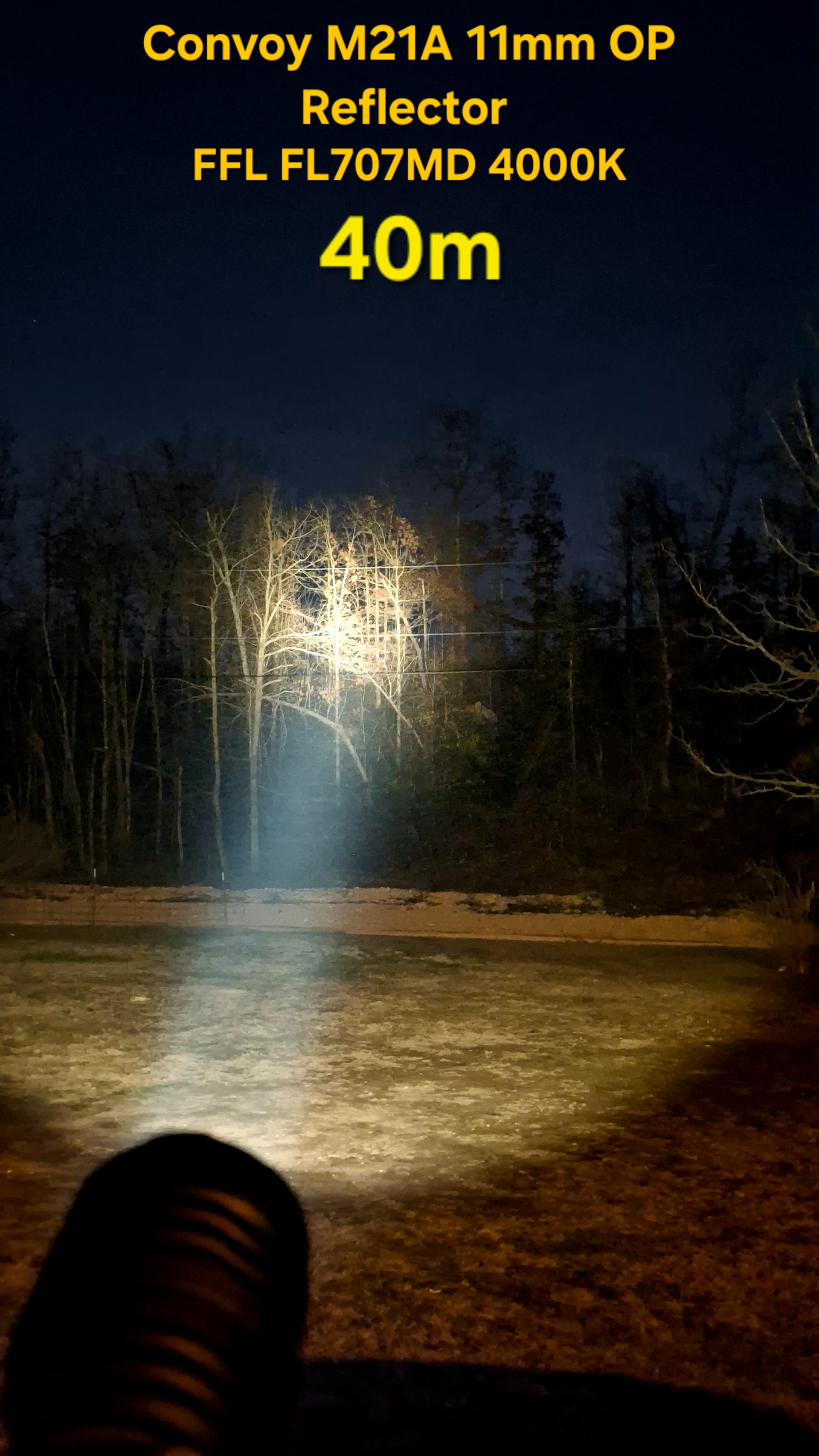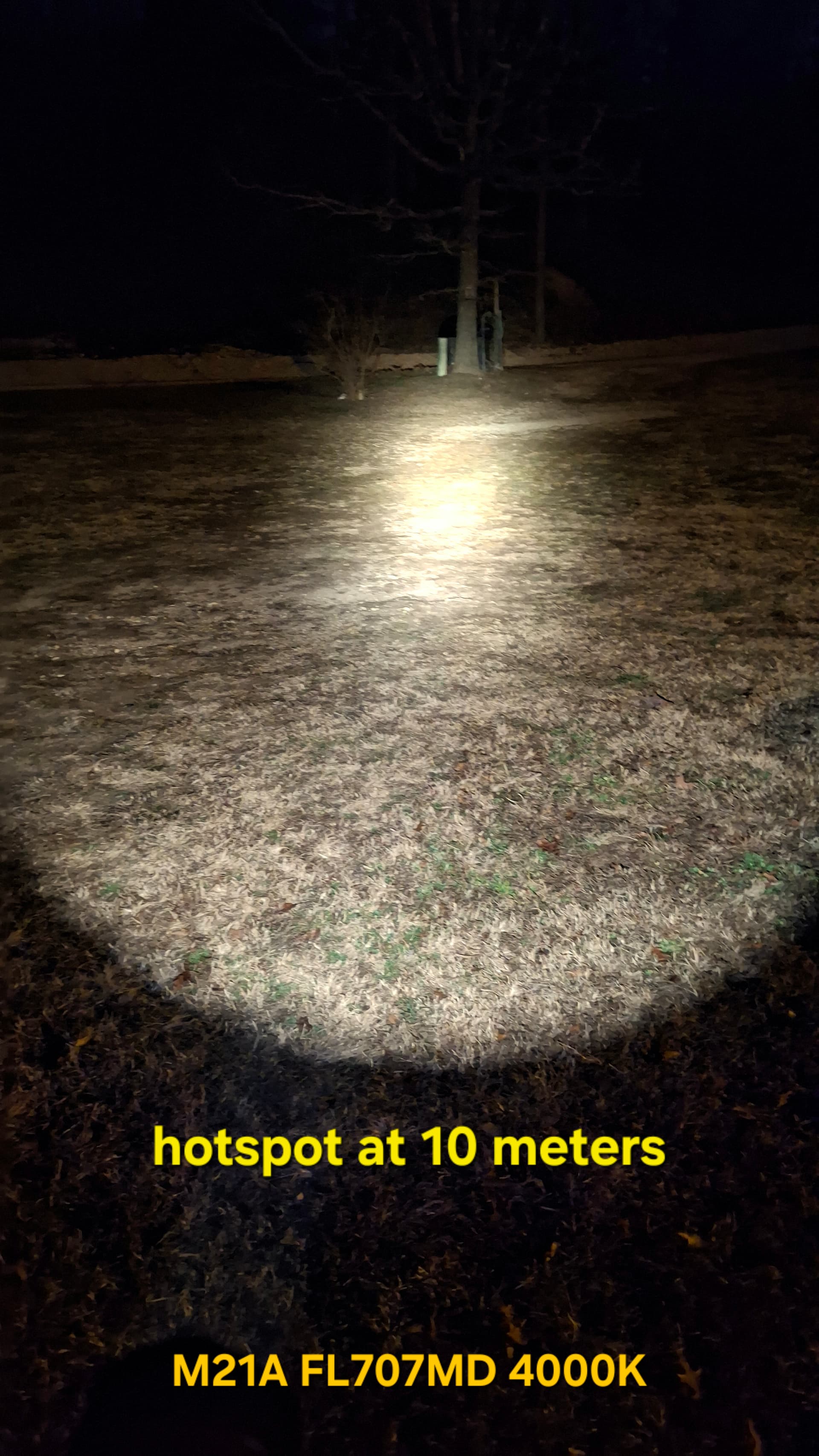 As mentioned in the pictures, I am using an orange peel reflector, because I didn’t have a smooth C8/M21A reflector that had a big enough emitter hole. I tried a 9mm hole one, but it didn’t work because the reflector was just sitting too high on the gasket and made a horrible ringy beam. With a smooth reflector focused well, im sure you could get a bit more throw.