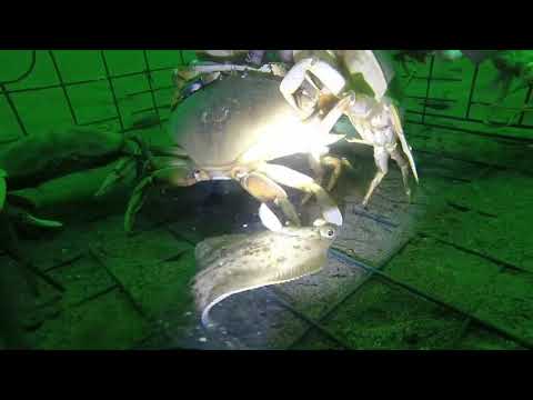 i guess the little flounder were attracted to the crumbs falling off the table as the big crabs were busy pulling, shredding and fighting over the bait.