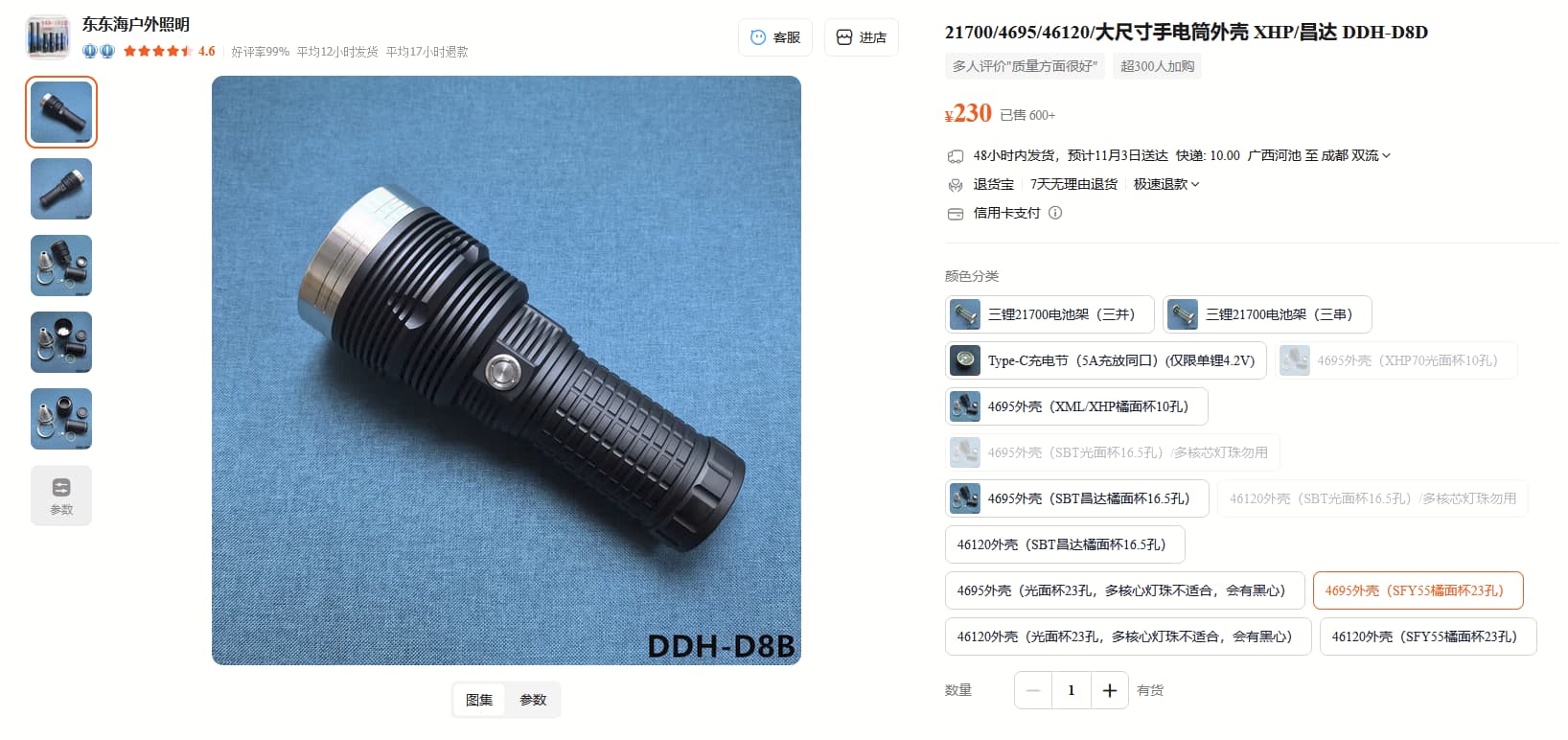 I was going to use SFY55 for my DIY 46950/46120 flashlight, but then NBD160 caught my attention instead.