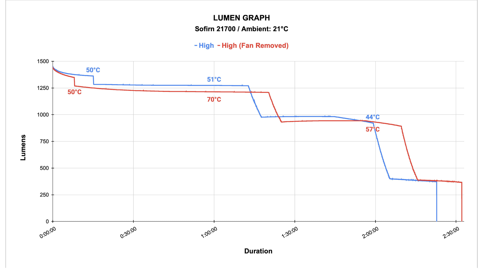 1280 lumens / 170m sustained is fairly impressive though. Personally, I’ll never get used to having a fan next to my ears at full throttle!