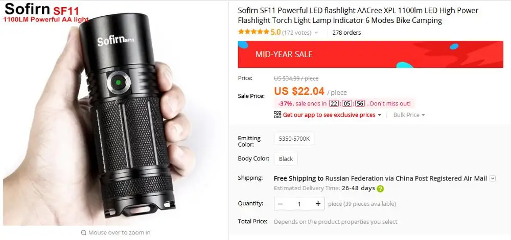 Sofirn Light joins in Mid-Year Sale on Ailexpress.com. ON 20, June (24 hours only)