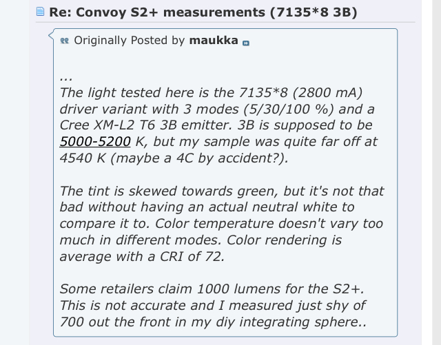Just thought I’d add that the SC31B lumens tested on High are no greater than 760 840 at turn on and 720 815 at 30 seconds. This is the cool white version. The 4000K version would be even lower