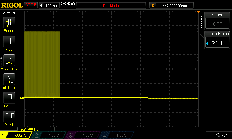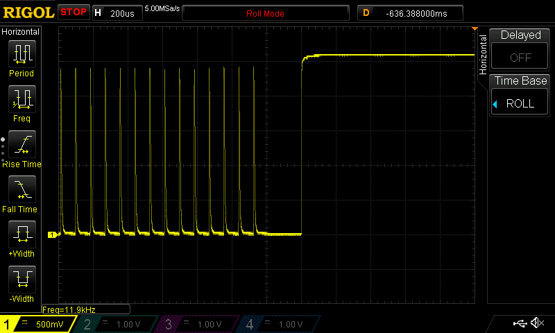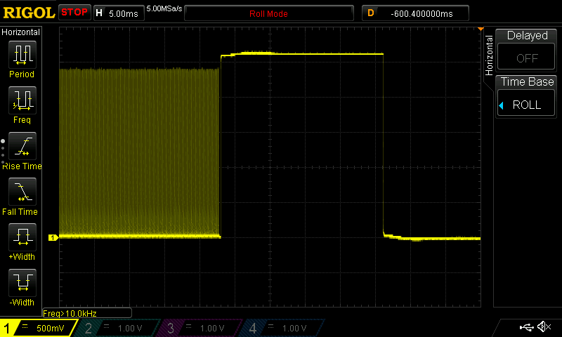 Now the output is switched off in a controlled manner. There’s still a weird single pulse, but it cannot be seen by eye. I’d call this fix successful!