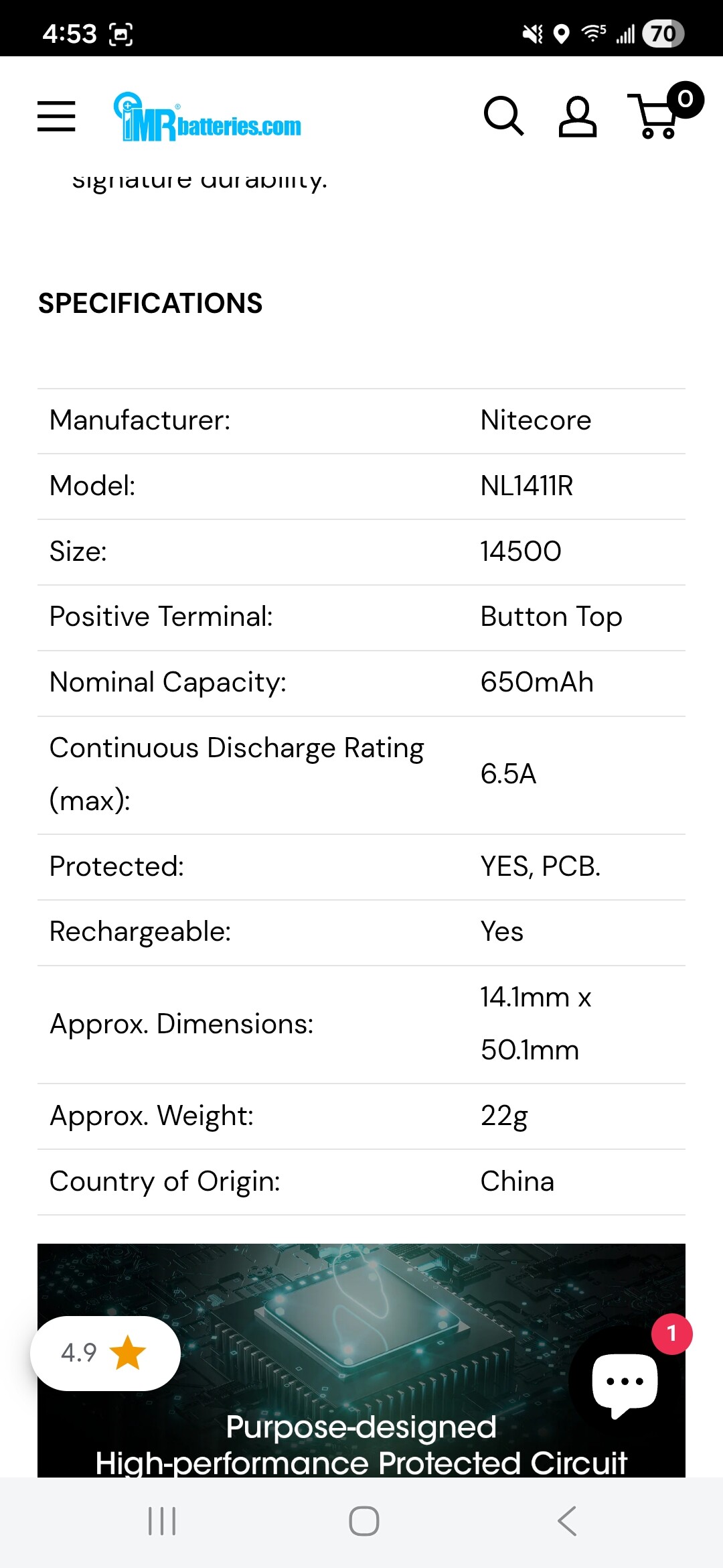 That shop You showed has mixed up description for the NL1411R. If You look at the following link Nitecore NI14500A 14500 650mAh Battery