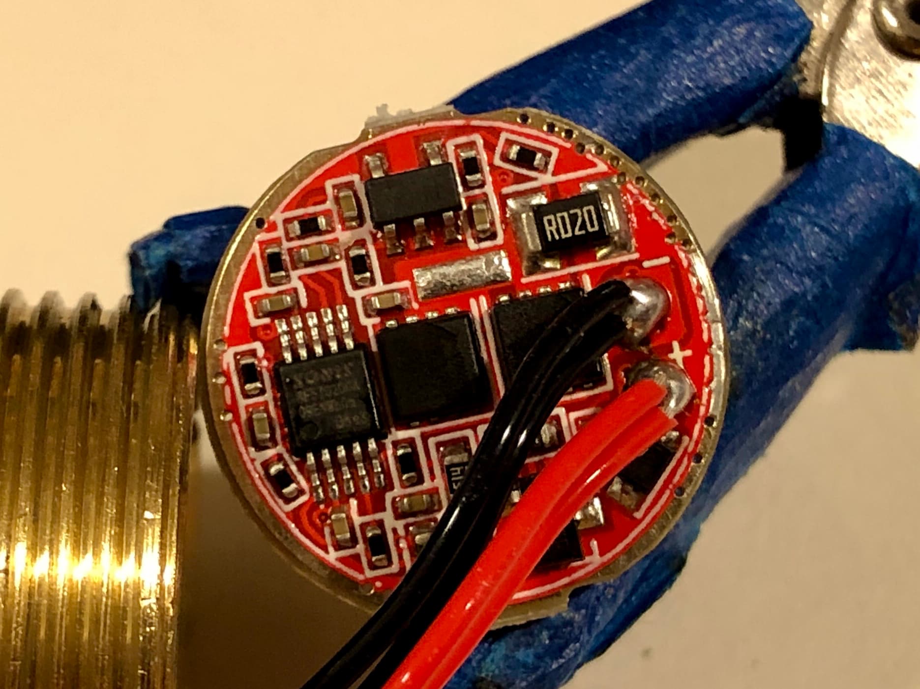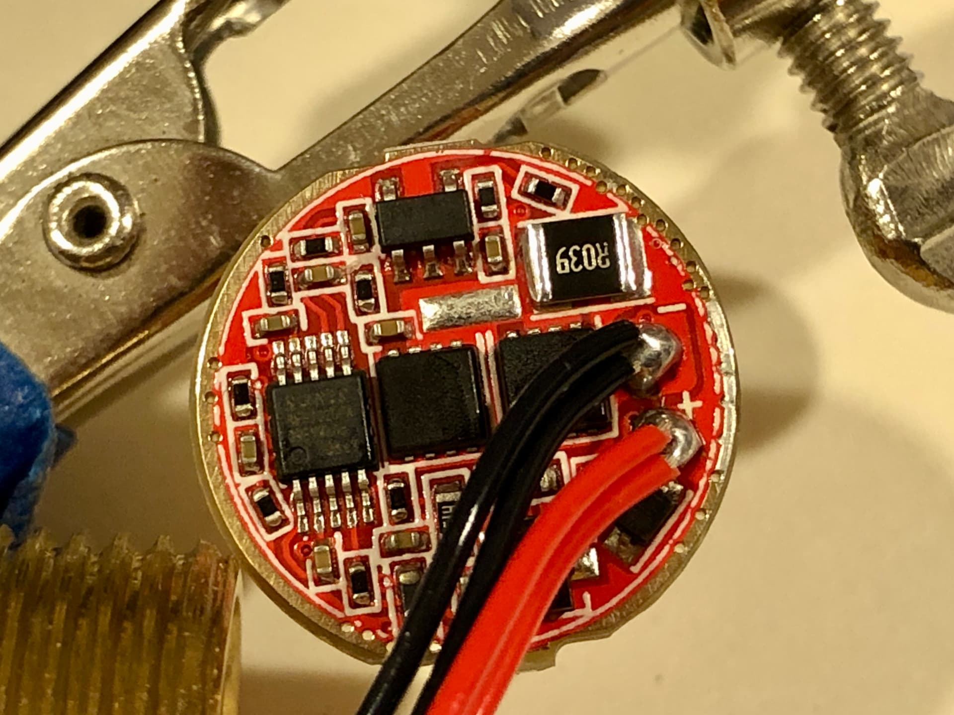 I finally finished the light. Soldering in that little 1206 resistor was kind of annoying, kept wanting to flip around. Also had a little trouble resoldering the led wires to the driver, but it works now, so