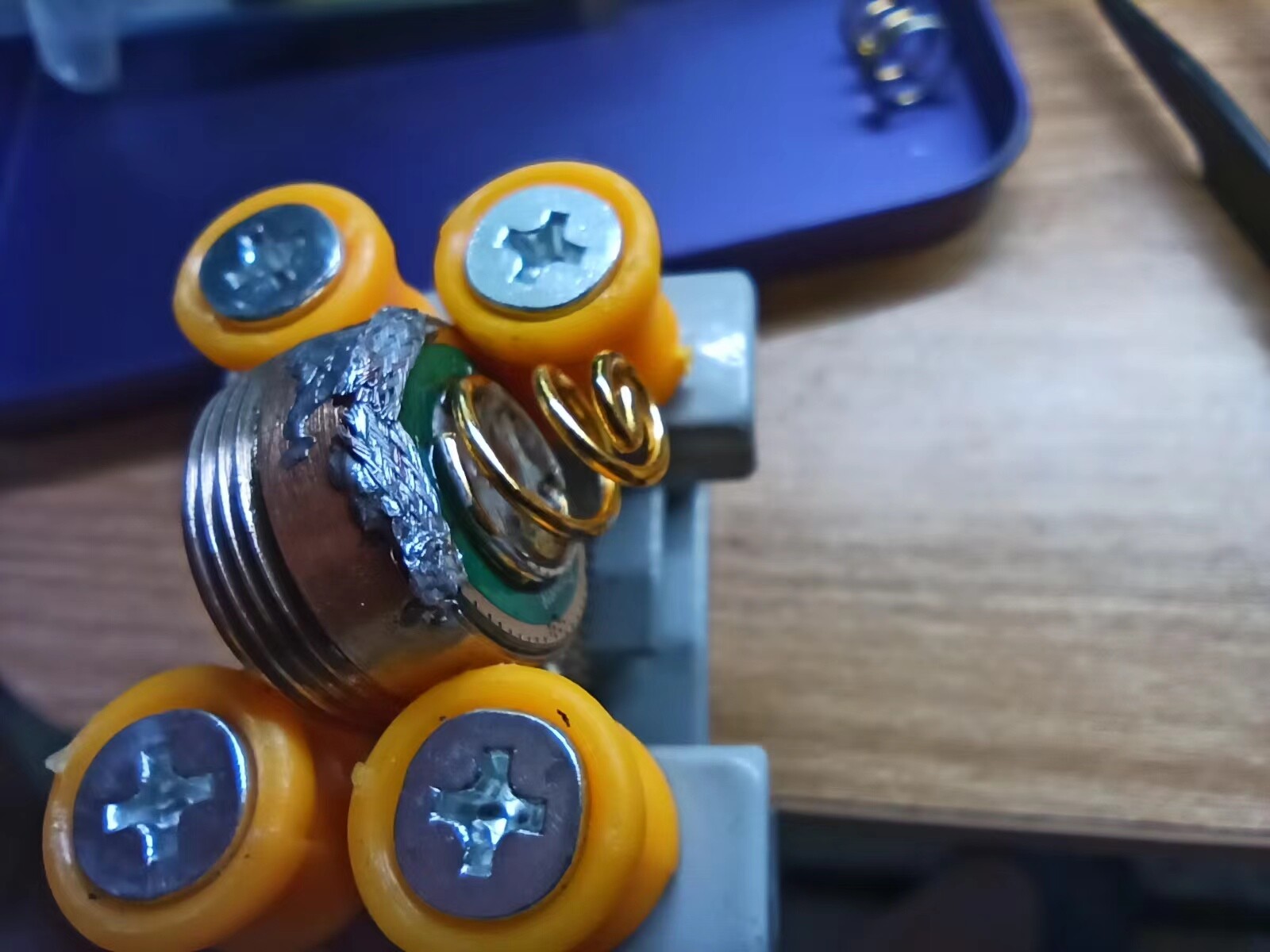 the drop-in I used is the most common kit, and I chose a Convoy 5A BUCK. Had a little trouble soldering the driver to the drop-in, I had to use some desoldering wick/braid to get them together. The switch and driver springs were swapped to Hank’s beryllium copper springs.