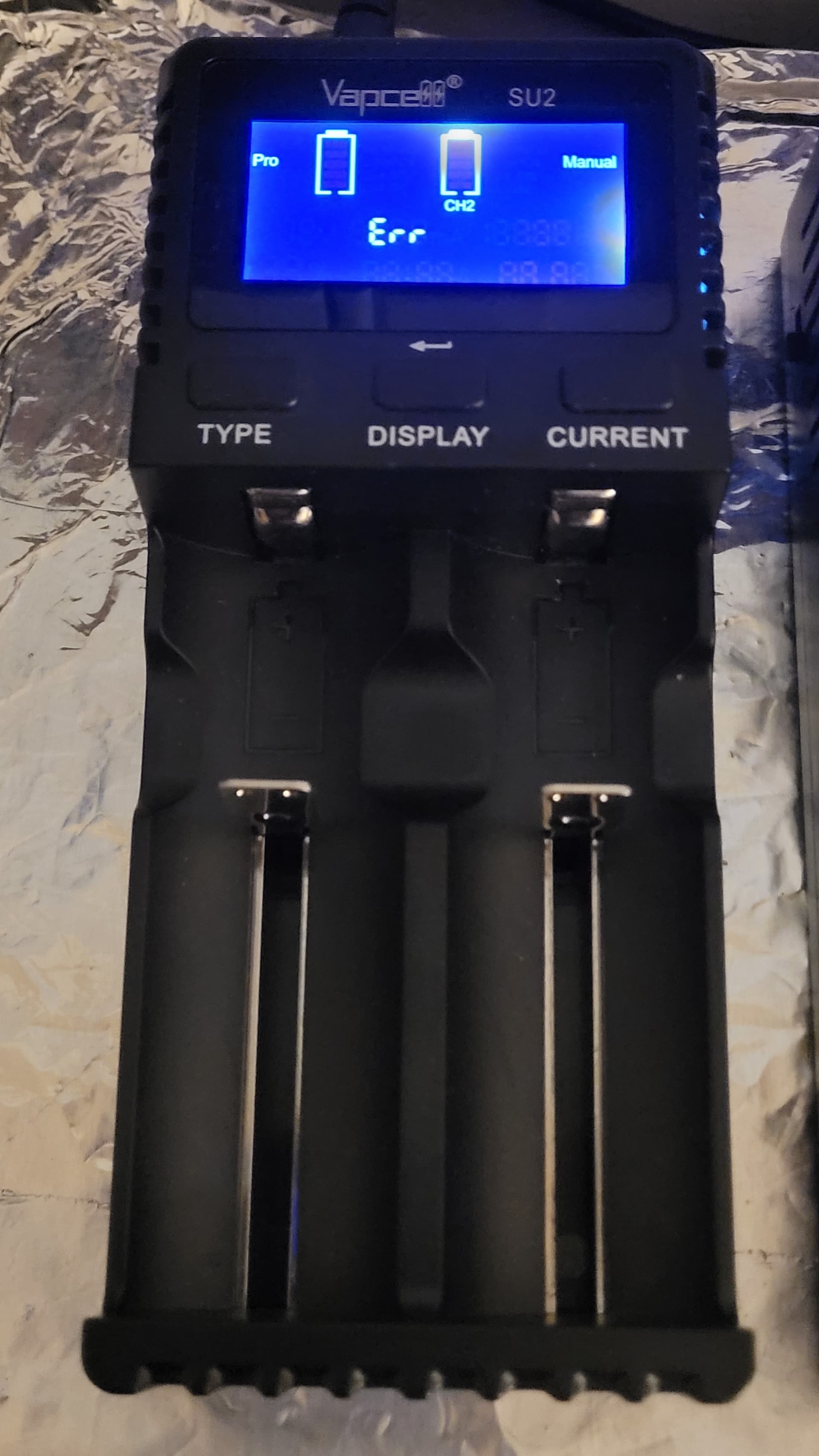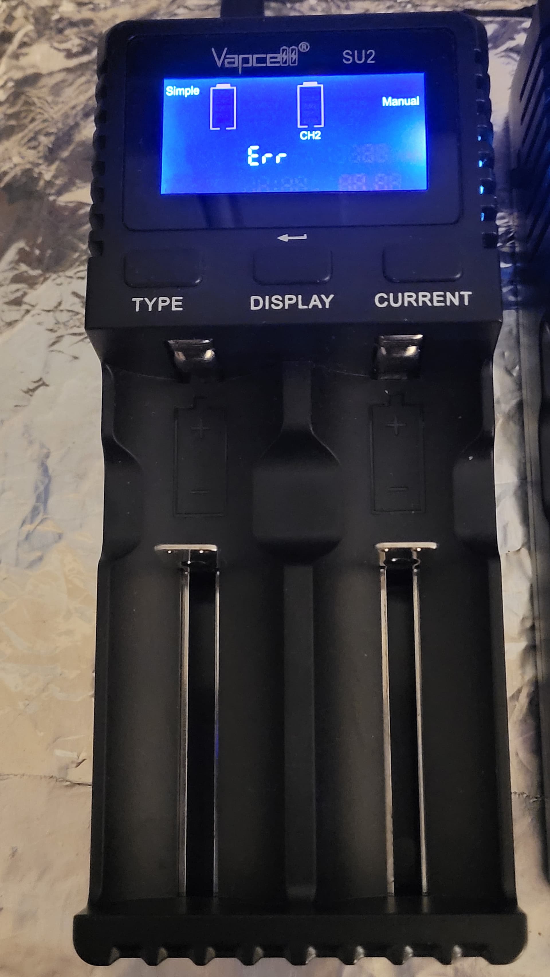 it was doing all this without a battery and again then it turned to ERR in both Pro and simple mode. I’ve never had a vapcell charger last more than a year the only reason I keep buying these is not much out there. That’s over I’m officially done I will use an old-fashioned charger that takes longer that’s reliable.