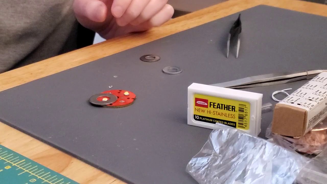 Washers: various sizes but the final washer is .92mm thick if my calipers can be trusted. the next two up are 1.21mm and 1.54mm but these are a lot less important you just want to take like 2/3 of the dome material off before the final cut or else the entire dome will try to peel off the LED at the end of your cut.
