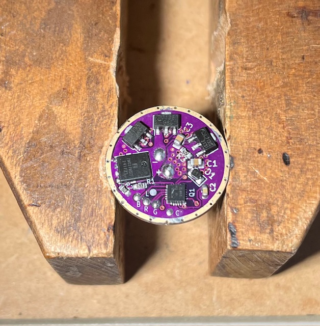 Ack! … Olight used high temp solder!!! - The next problem I had was the solder to the star wouldn’t easily melt. Even with the star lifted up from the light so all the heat was going into the star it just didn’t want to melt. I suspect Olight used high-temp solder, or perhaps lead-free solder. Using a fat tip iron set at its max temperature of 480f I was barely able to get the leads desoldered after much effort.