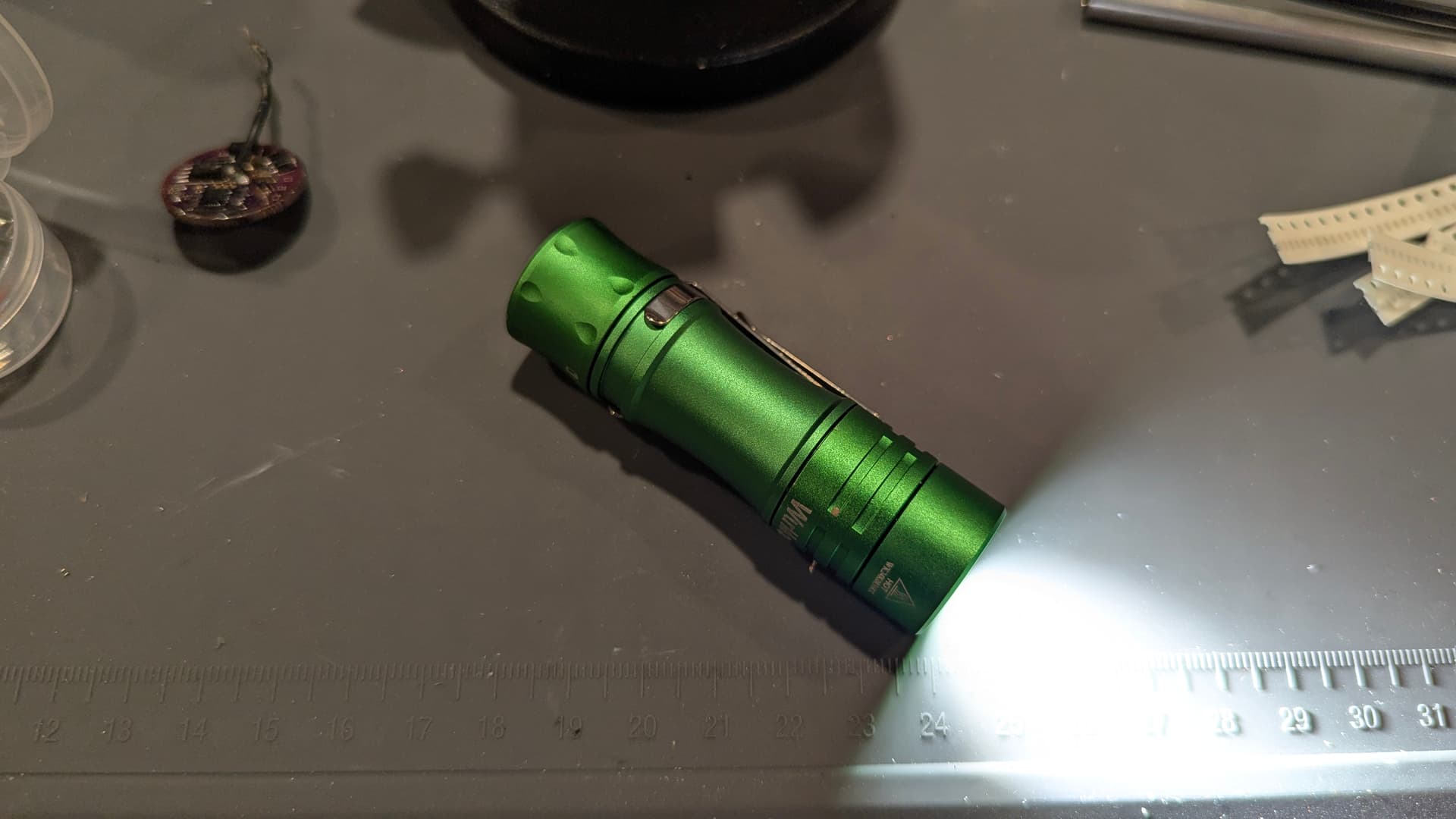 The mod was successful with no visible damage to the exterior and the high CRI beam looks much better to my eyes than the low-CRI neutral white Osram P9 that the light came with. However, it’s very floody. I wonder if it would look better with a Dedomed 5700K Nichia 519a since right now the light lacks punch…