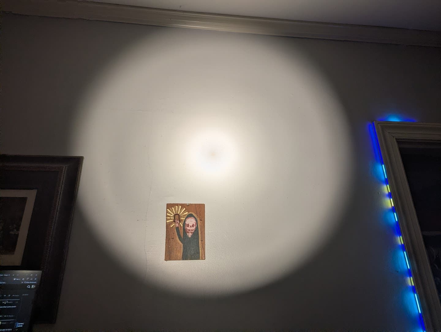 Sprayed the black matt paint on the interior to reduce reflexes as much as possible, but still the rings are present when directed on the wall. There’s also a tiny donut hole.