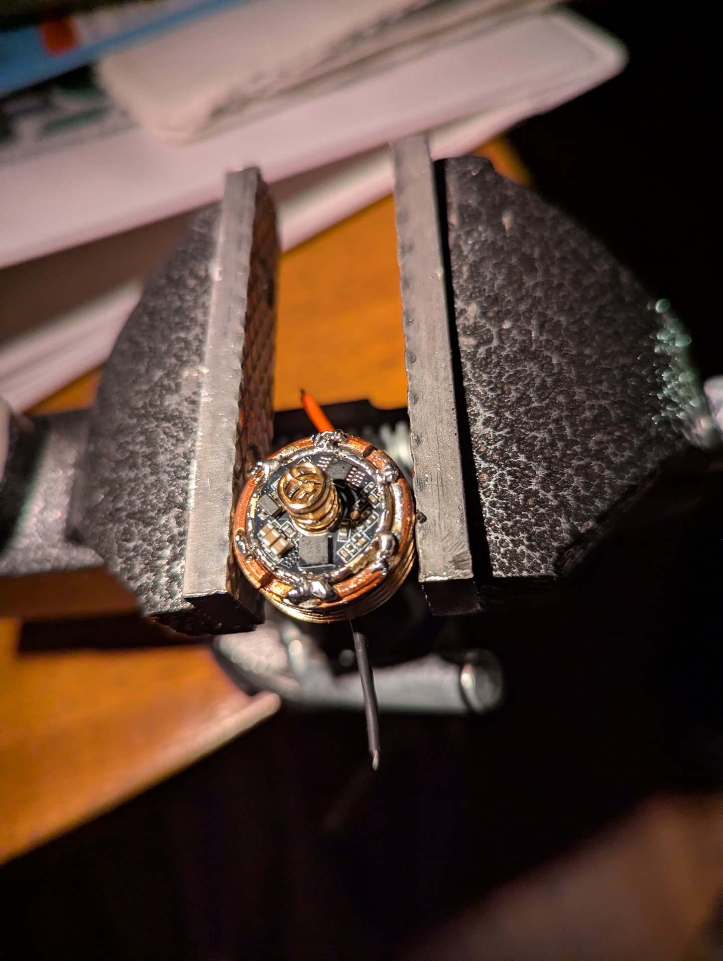 Decided to swap the sft40 3000k in my convoy pocket rocket to a sft70 3000k. I didn’t realize when I disassembled that my driver was taller than my pill’s cavity, so I needed to solder the driver to the pill. First time for me, but went off without a hitch. Got to braze and solder for this project.