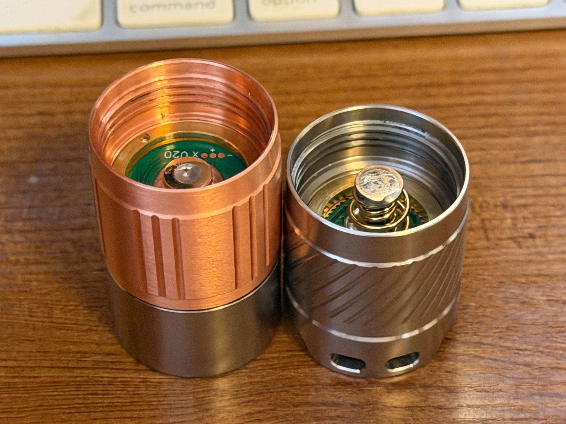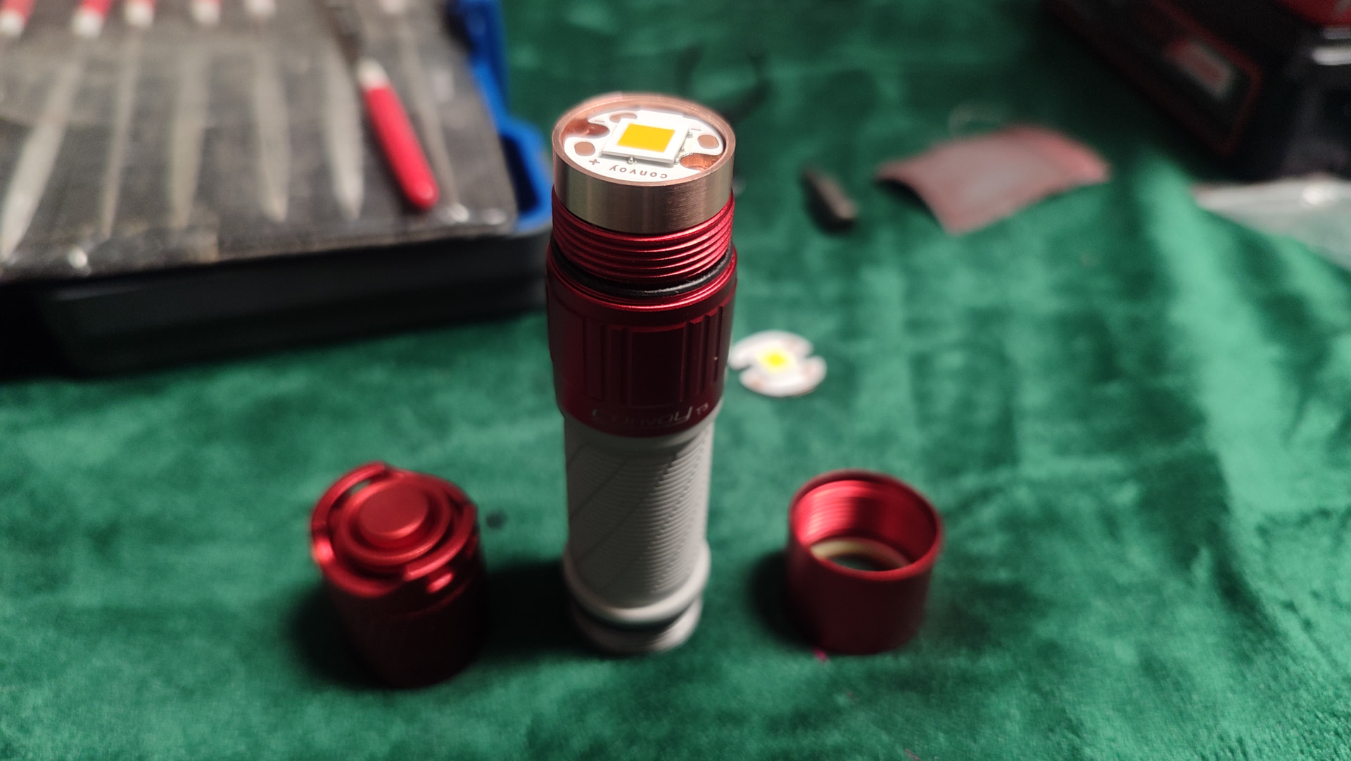 This morning I cleaned the mcpcb, replaced the driver spring with brass button and tailcap switch with a double spring rated at 20a ![]()