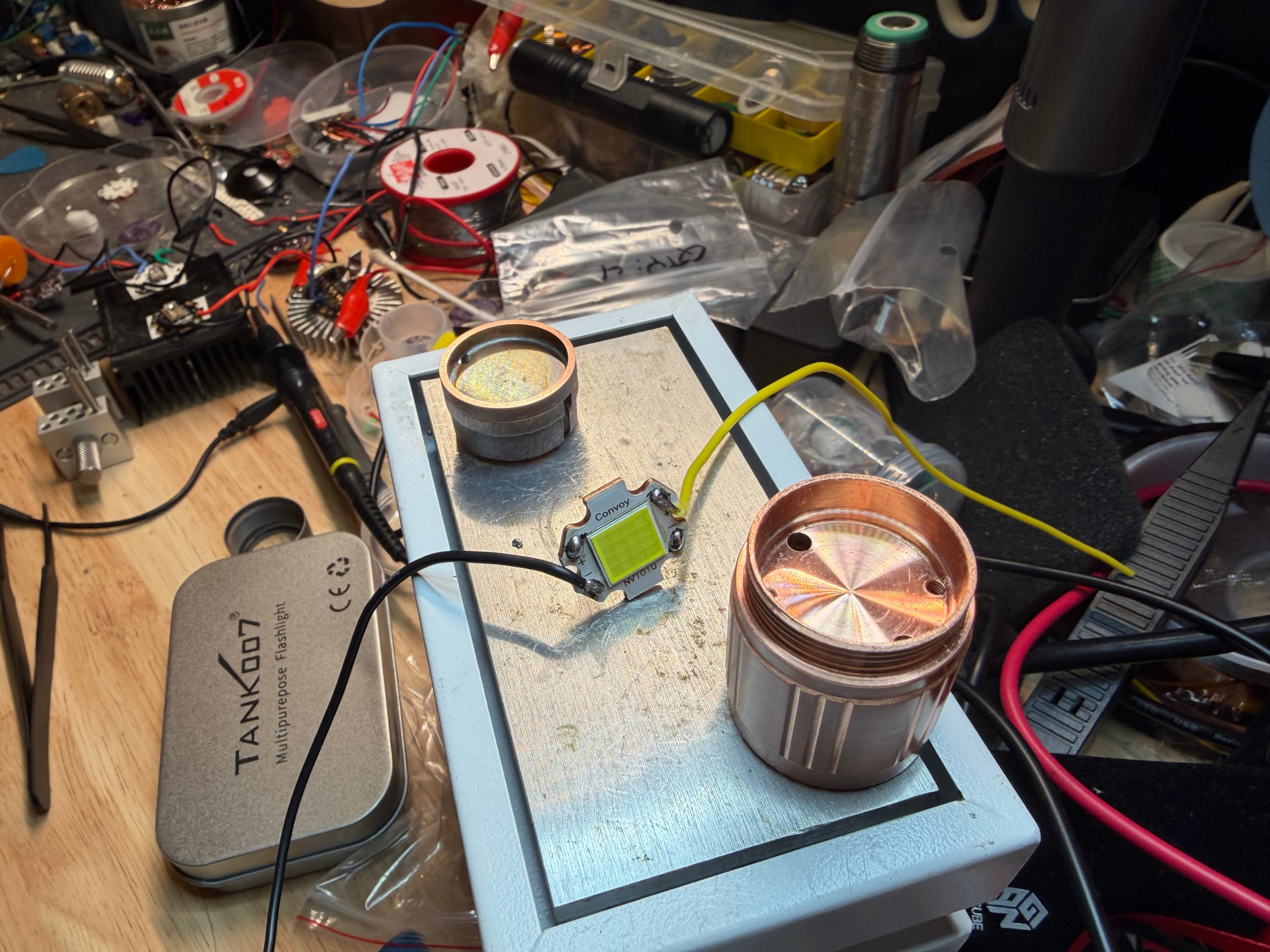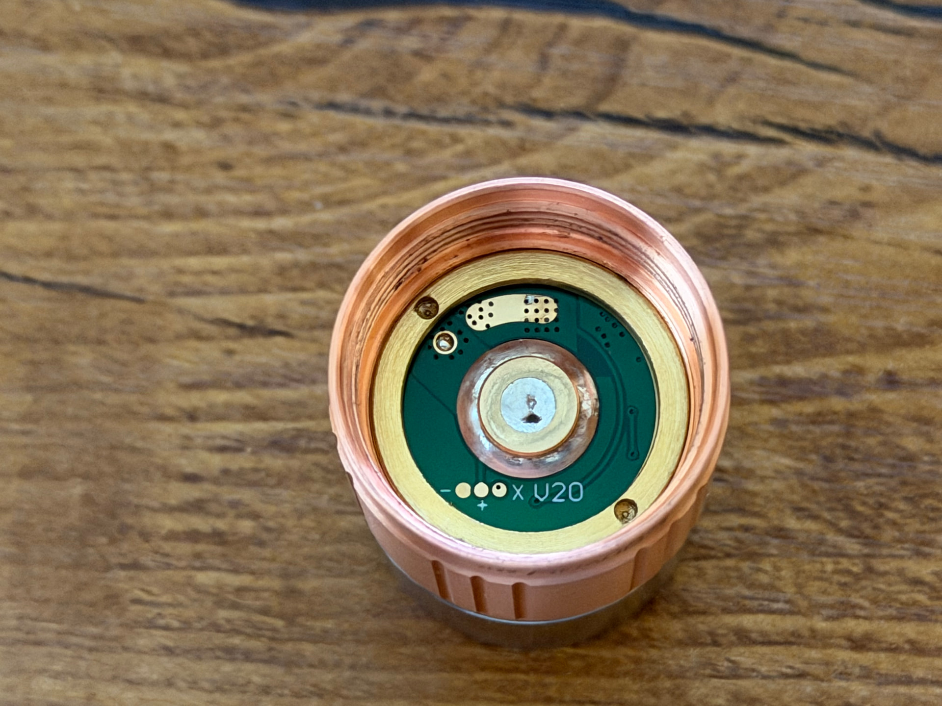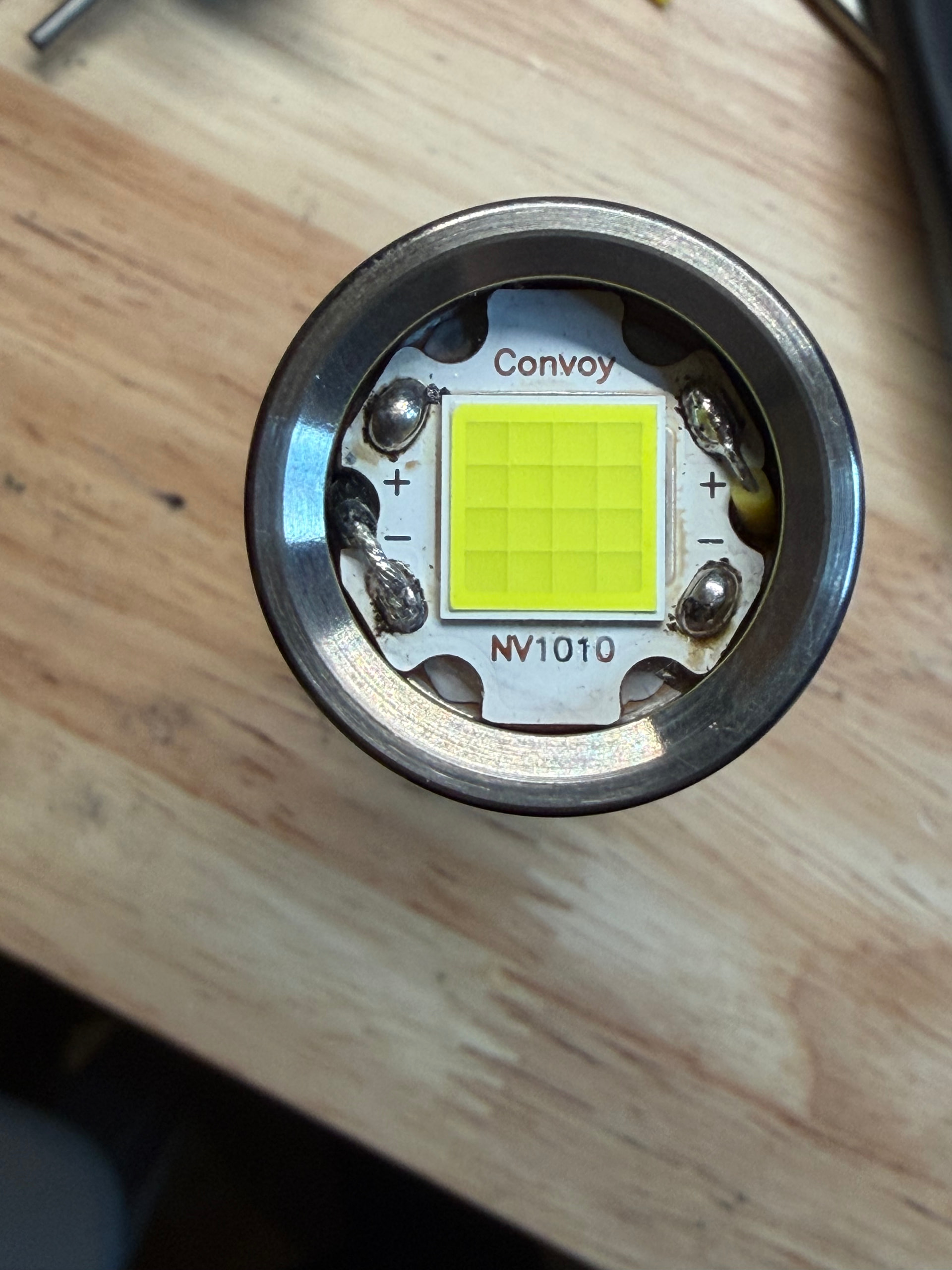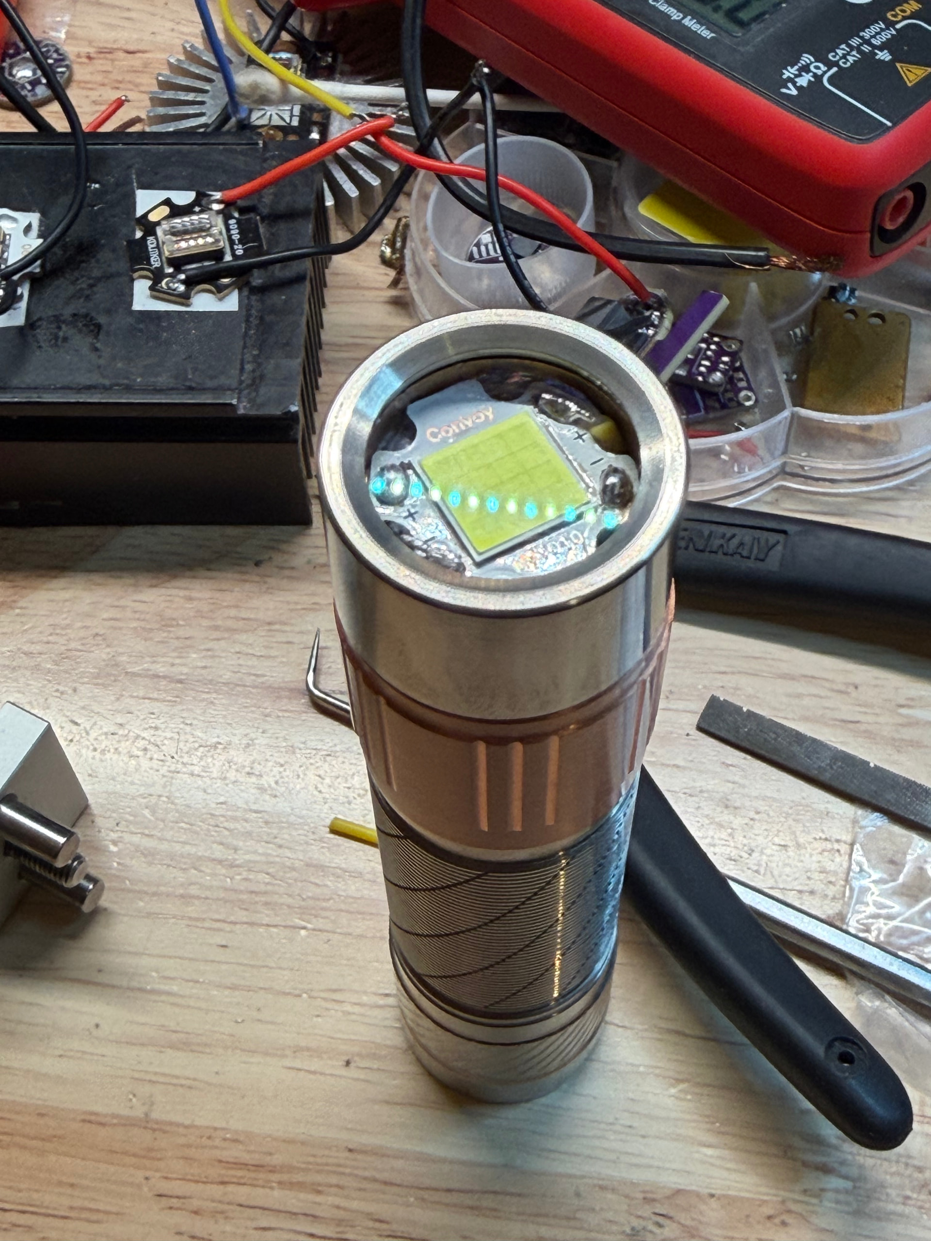 Still need to bypass or replace the driver spring with a brass button, a little disappointed with the current… but even though this thing is incredibly bright at ~20a!
